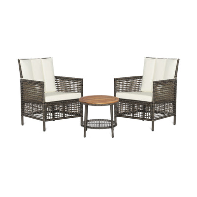 3 Pieces Patio Rattan Furniture Set with Cushioned Sofas and Wood Table Top - Relaxacare