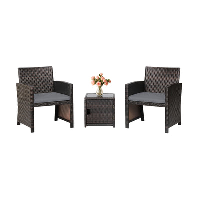 3 Pieces Patio Wicker Furniture Set with Storage Table and Protective Cover - Relaxacare
