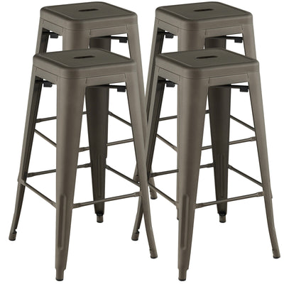 30 Inch Bar Stools Set of 4 with Square Seat and Handling Hole-Gun