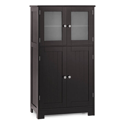 2-Door Bathroom Floor Storage Cabinet Space Saver Organizer-Brown