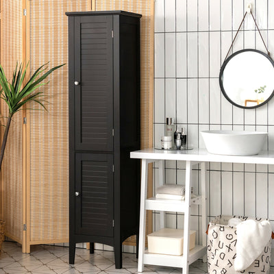 Bathroom Wooden Floor Cabinet Multifunction Storage Rack Stand Organizer-Black