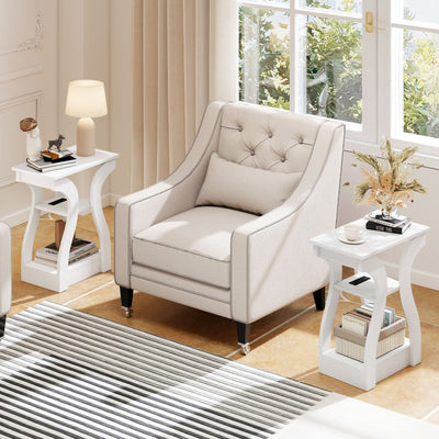 Set of 2 Nightstand End Beside Table Drawers-Walnut