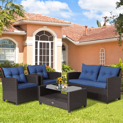 Set of 2 Fade-Resistant Wicker Patio Ottoman-Brown