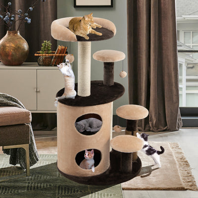 Multi-level Cat Tower with Sisal Covered Scratching Posts-M
