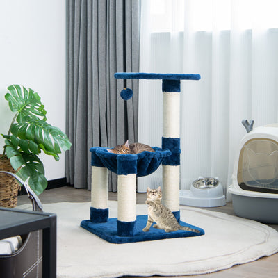 Multi-level Cat Tree with Scratching Posts and Cat Hammock-Blue