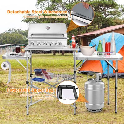 Foldable Outdoor BBQ Portable Grilling Table With Windscreen Bag
