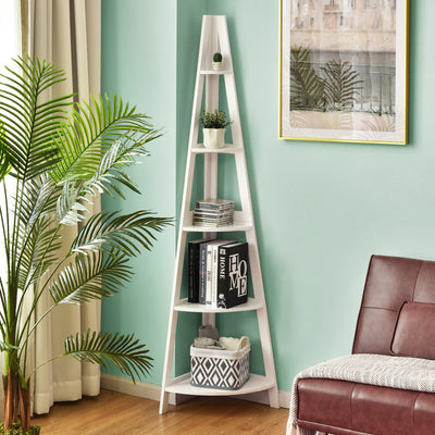 5-Tier Modern Corner Bookcase Shelf with Strong Wooden Frame-White