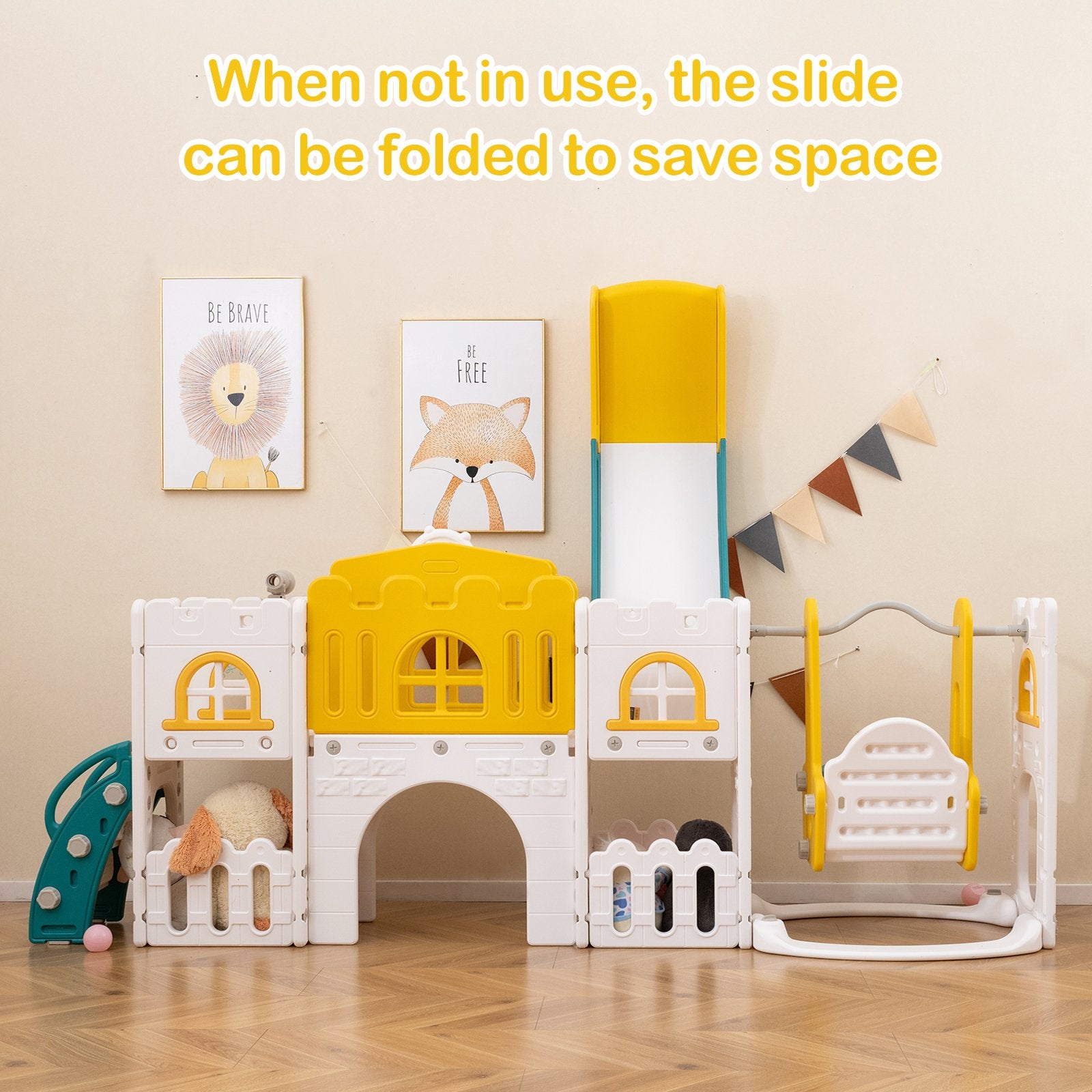 10-in-1 Toddler Swing and Slide Set Climber Playset with Basketball Hoop-Yellow
