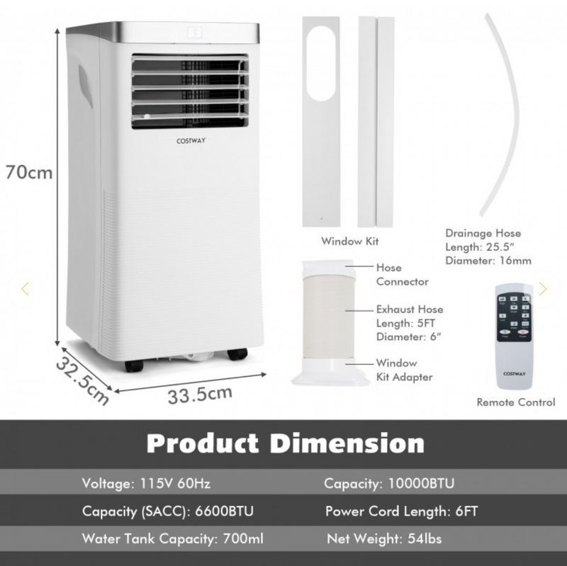 -3-in-1 portable air conditioner with built-in fan/dehumidifier/sleep mode