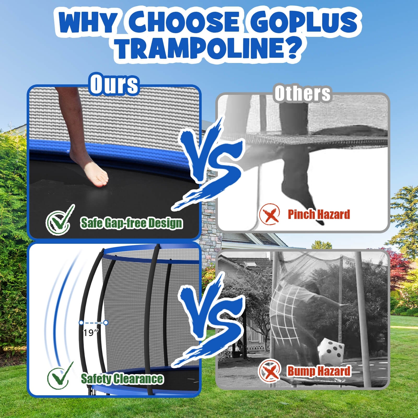 ● Easy Assembly and Everything Included: The trampoline comes with all installation tools and accessories you need  and the installation process is easy following the detailed instructions. Besides  the humanized self-locking system brings you quick and solid connection without tools  saving your time and effort.