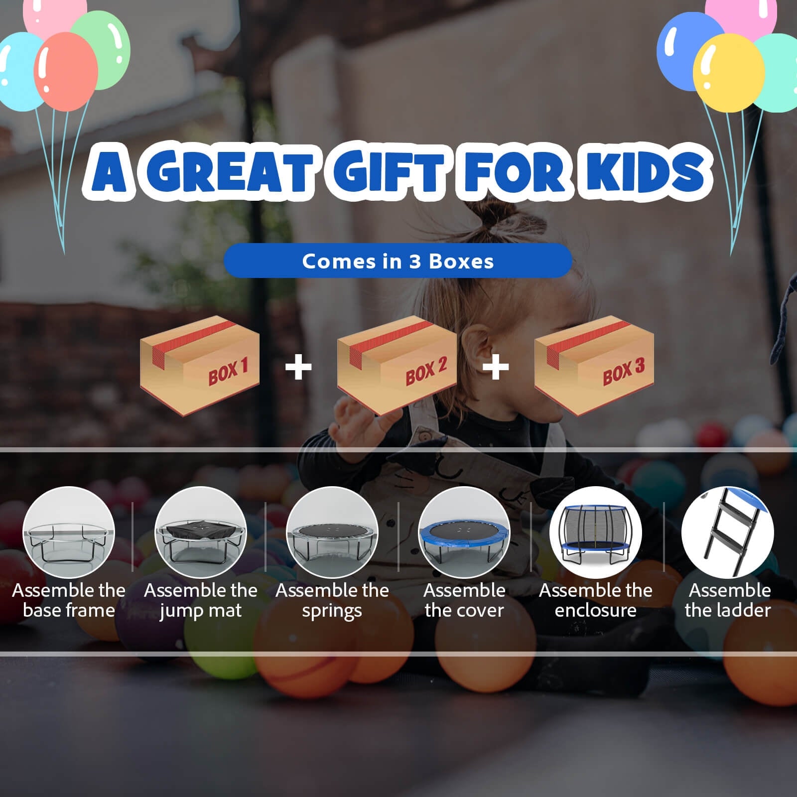 ● Safety is The Top Priority: All the trampolines have been tested for safety and quality  and meet or even exceed ASTM standards  offering a safe jumping experience for your kids. Note: the whole set will be delivered in 3 (12FT) boxes and you may receive them at different time.