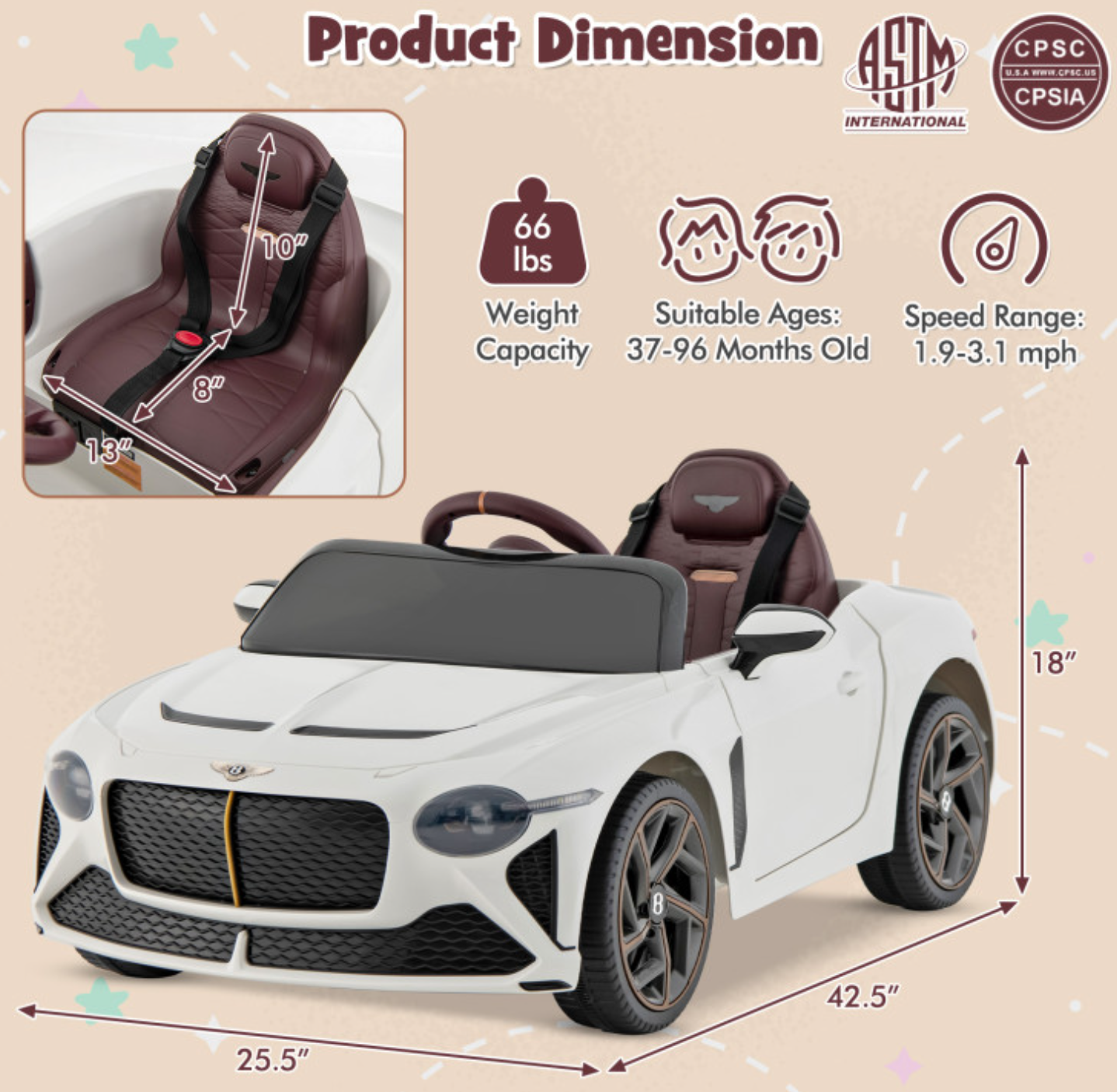 • Multiple Entertainment Functions: Built with horn sound, engine sound, music and storytelling, this licensed Bentley car allows toddlers to drive with fun. Also, you can connect your phones to play kids' favorite songs with the USB port, AUX port and wireless connection. Additionally, the bright LED lights add to the fun of driving.