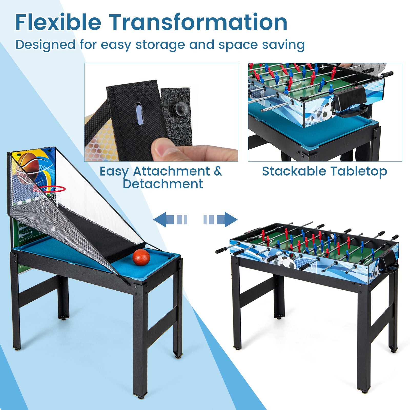 ● Easy Stackable Design: The thoughtful stacking design of this game set save valuable space. Simply stack all the tabletops together when not in use making it easy to switch between different game surfaces and ensuring hassle-free storage.