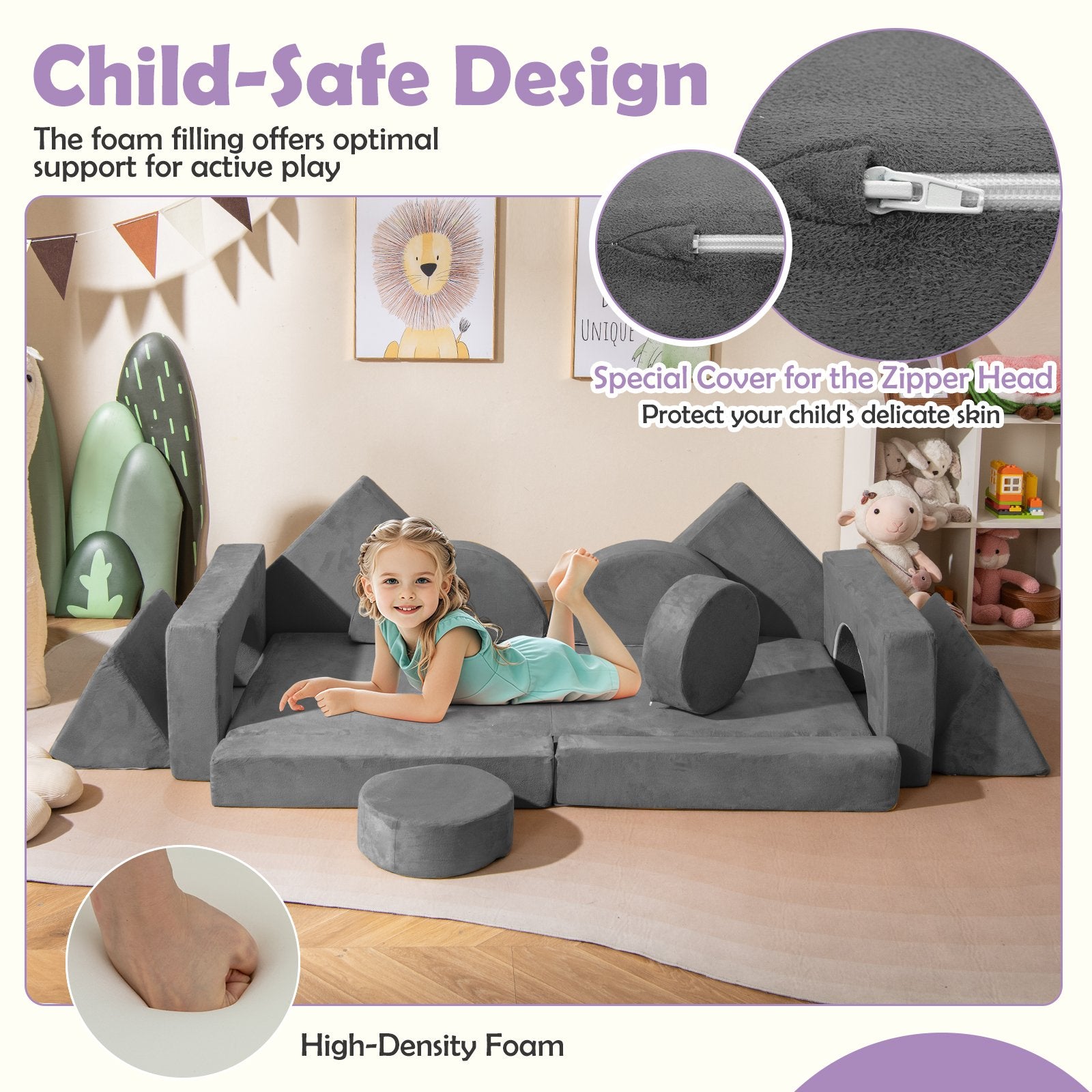 ● Skin-Friendly and Robust Materials: This modular play couch is made from soft wear-resistant premium suede fabric that is gentle on the skin. The machine washable covers ensure easy upkeep and longevity making this play couch the perfect addition for daily use.