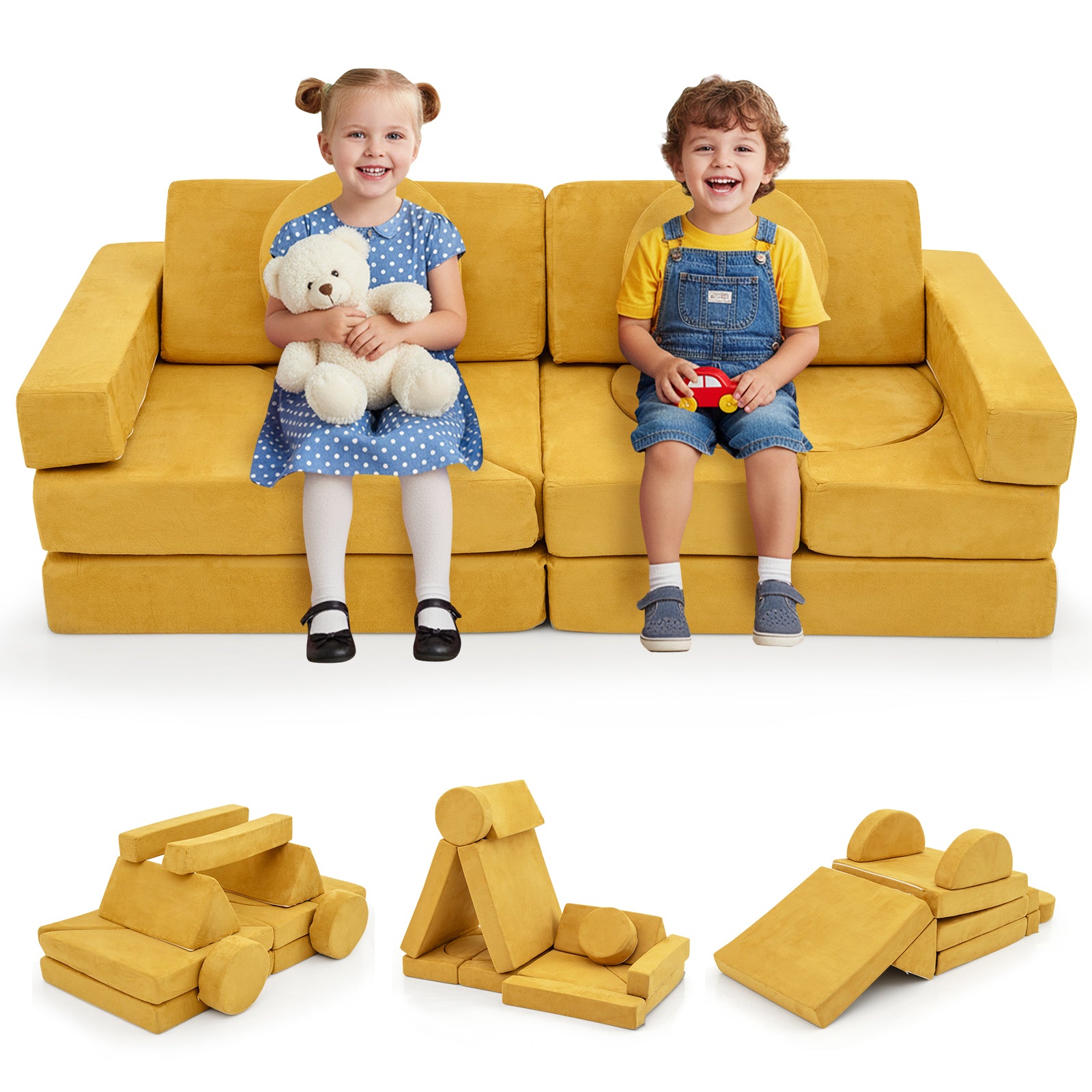 14 PCS Modular Kids Play Couch for Playroom and Bedroom-Yellow