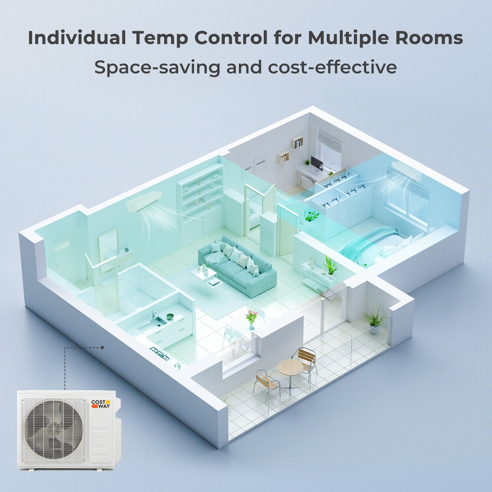 ● Multi-room Cooling Solution: This 18000 BTU 2-zone mini split AC unit offers individual temp control for multiple rooms. The high-performance outdoor unit with a bottom built-in heater makes the AC unit cool even at 131℉and heat even at -4℉.