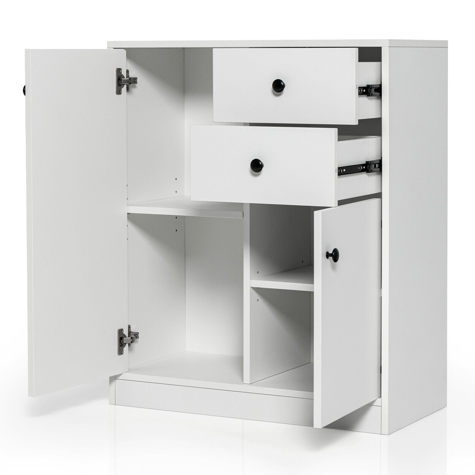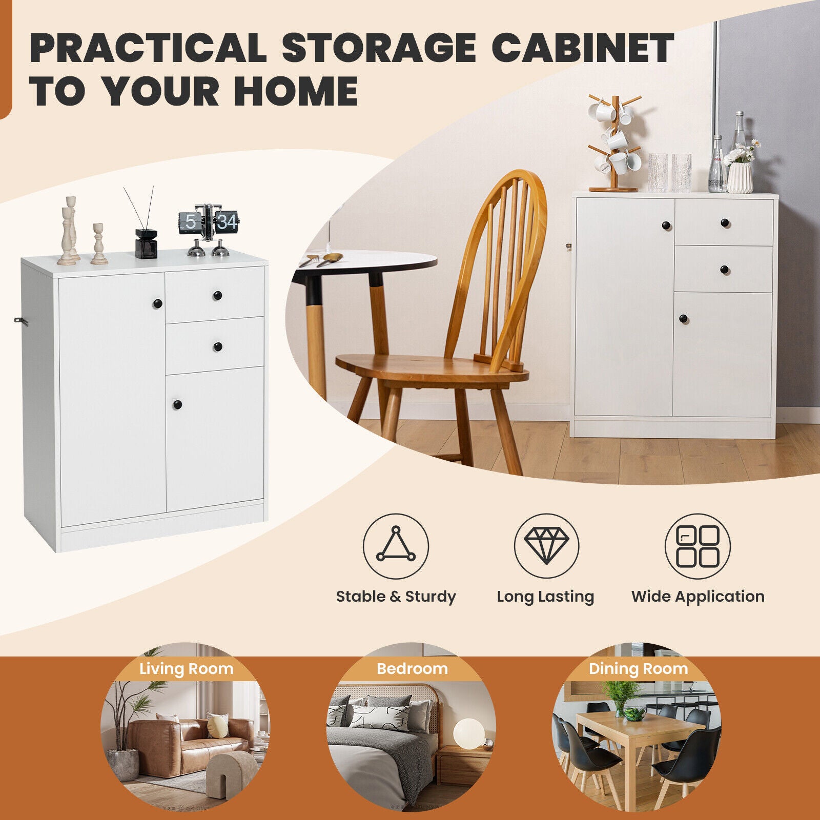 ● Master of Storage: The freestanding floor cabinet is a good storage helper to offer large space for different purposes. There is a spacious tabletop for holding household appliances or ornaments and 2 pull-out drawers for odds and ends. Besides the 2 door cabinets at the left and right further expand the storage space for sundries of various sizes.