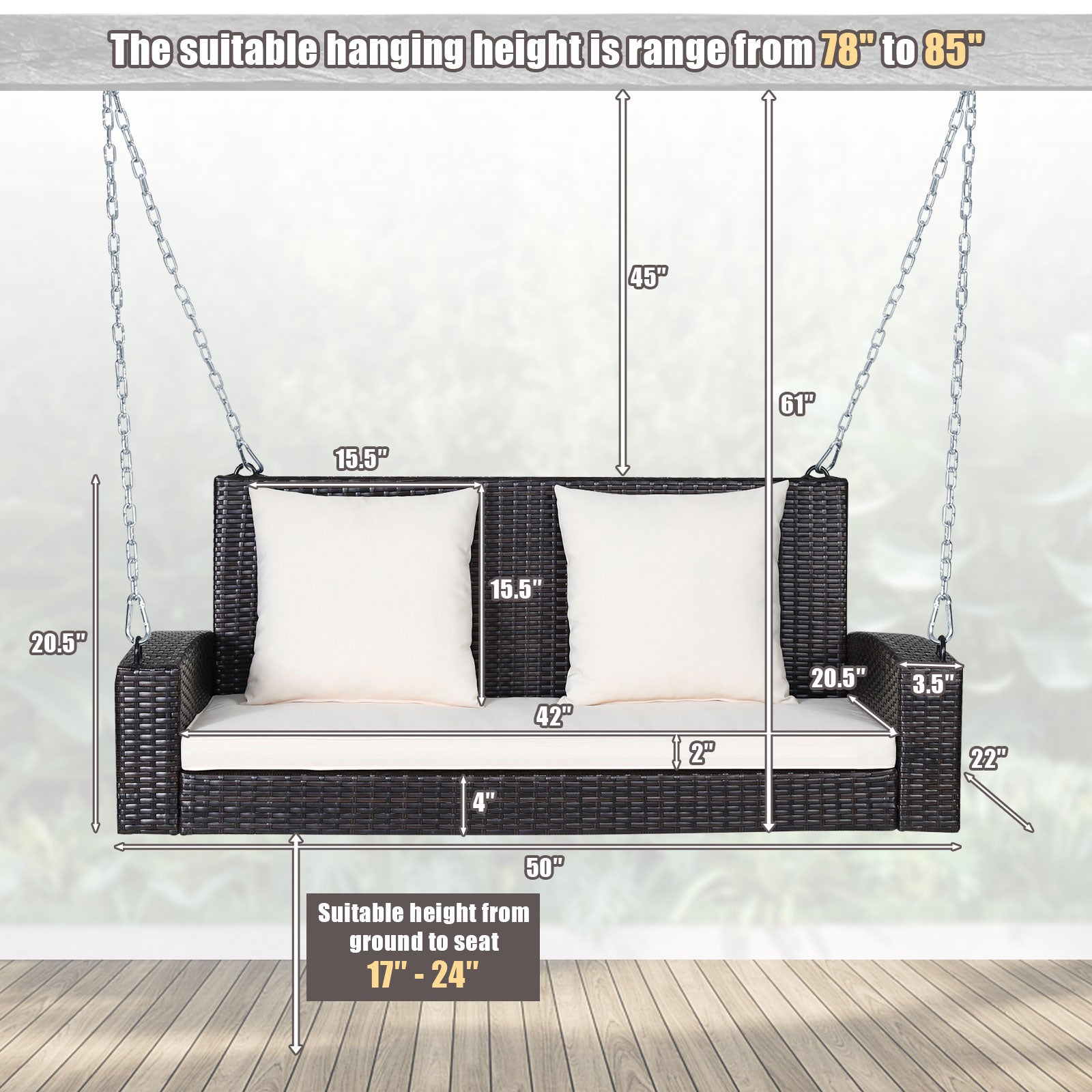 ● Effortless Assembly: You will also receive the easy-to-follow instructions and all necessary accessories in the package so it will be a piece of cake to finish the assembly without too much time and efforts. The overall dimension of swing chair is 50" x 22" x 20.5" (L x W x H).