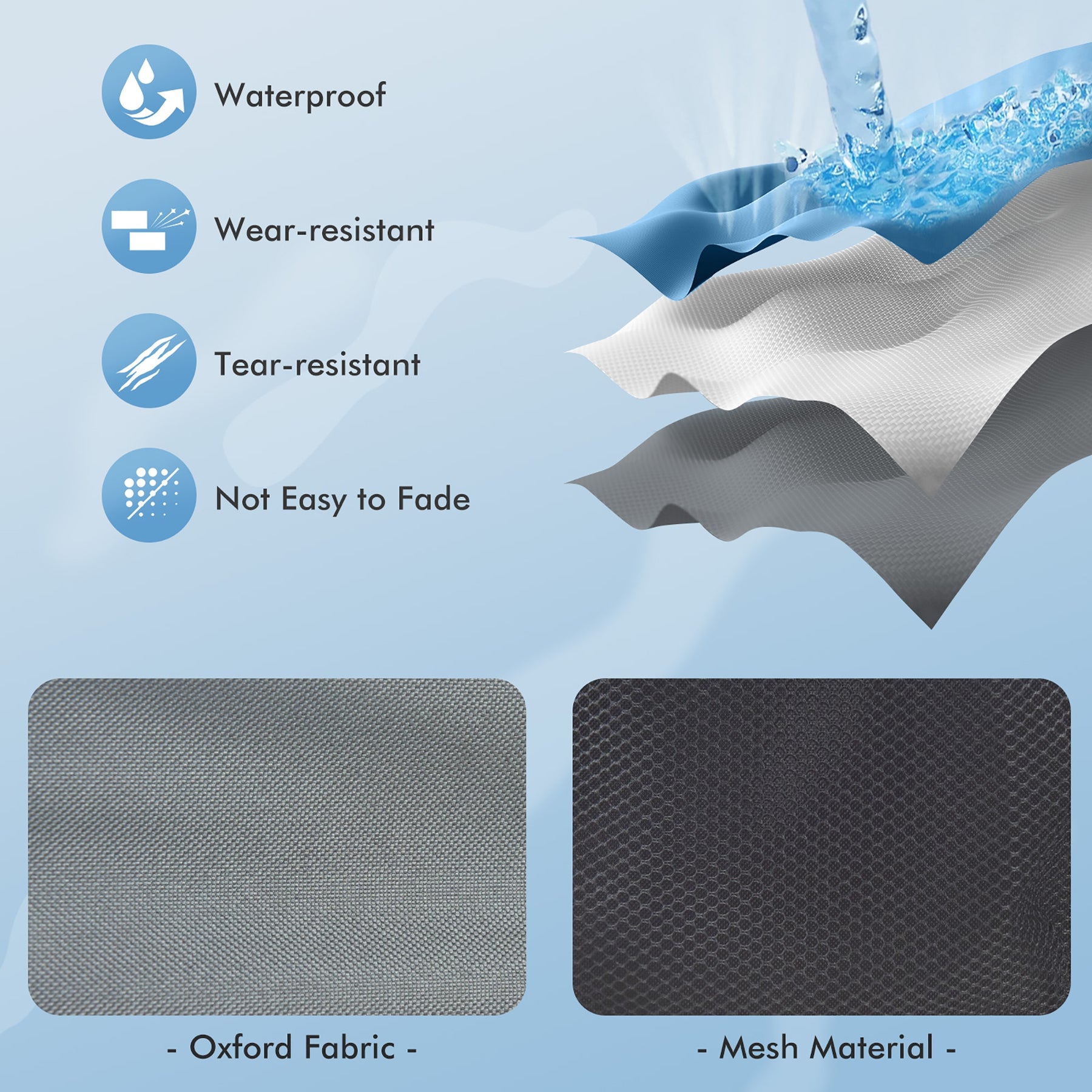 • Waterproof oxford fabric breathable mesh and solid MDF for long-lasting service life