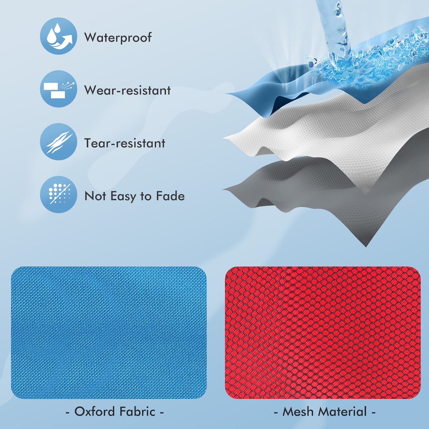 - Waterproof oxford fabric breathable mesh and solid MDF for long-lasting service life