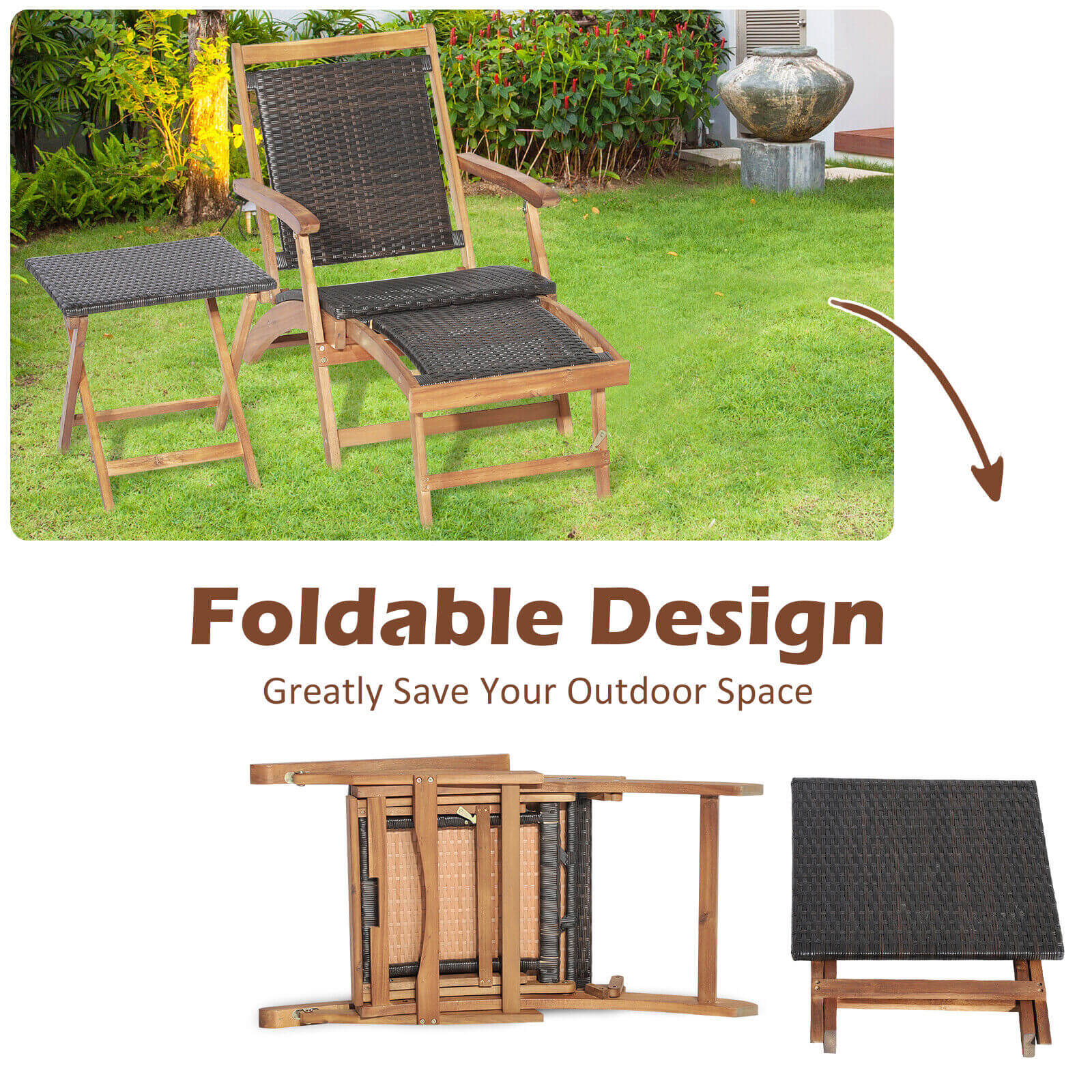 ● Selected Materials: Carefully made of fade-resistant and sun-protective mix of brown PE rattan as well as solid acacia wood with a reinforced triangular structure this outdoor furniture folding table and chair set not only stands the test of time but ensures strong stability.