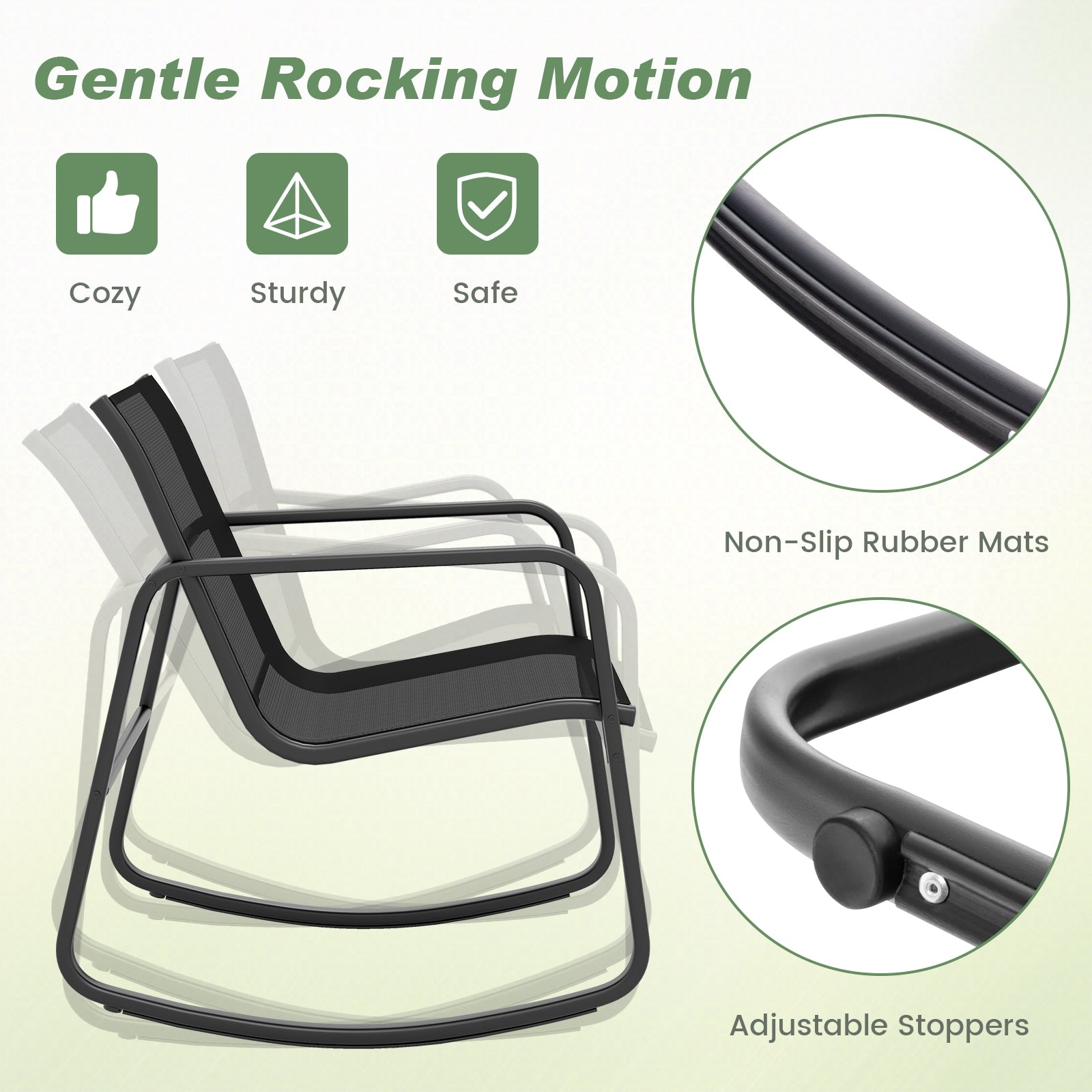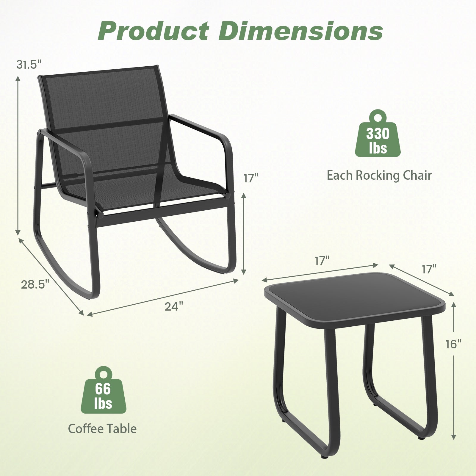 ● Ideal Relaxing Choice: This sturdy and safe 3-piece patio rocking set will be a nice option for outdoor relaxation. Whether in backyard poolside or balcony it will always allow you to enjoy comfort and ease.