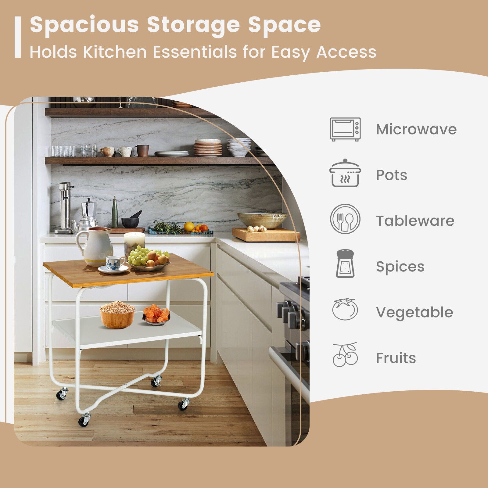-2 tiers offer storage space for daily items
