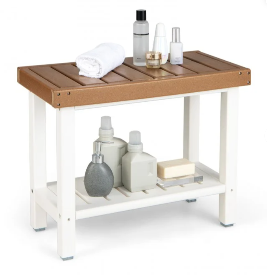 ● Slatted Design and Easy Assembly: The slatted seat and shelf are designed for quicker drainage and better ventilation. What's more, this 2-tier shower bench with detailed instructions and included tools is easy to put together and won't take you much time.