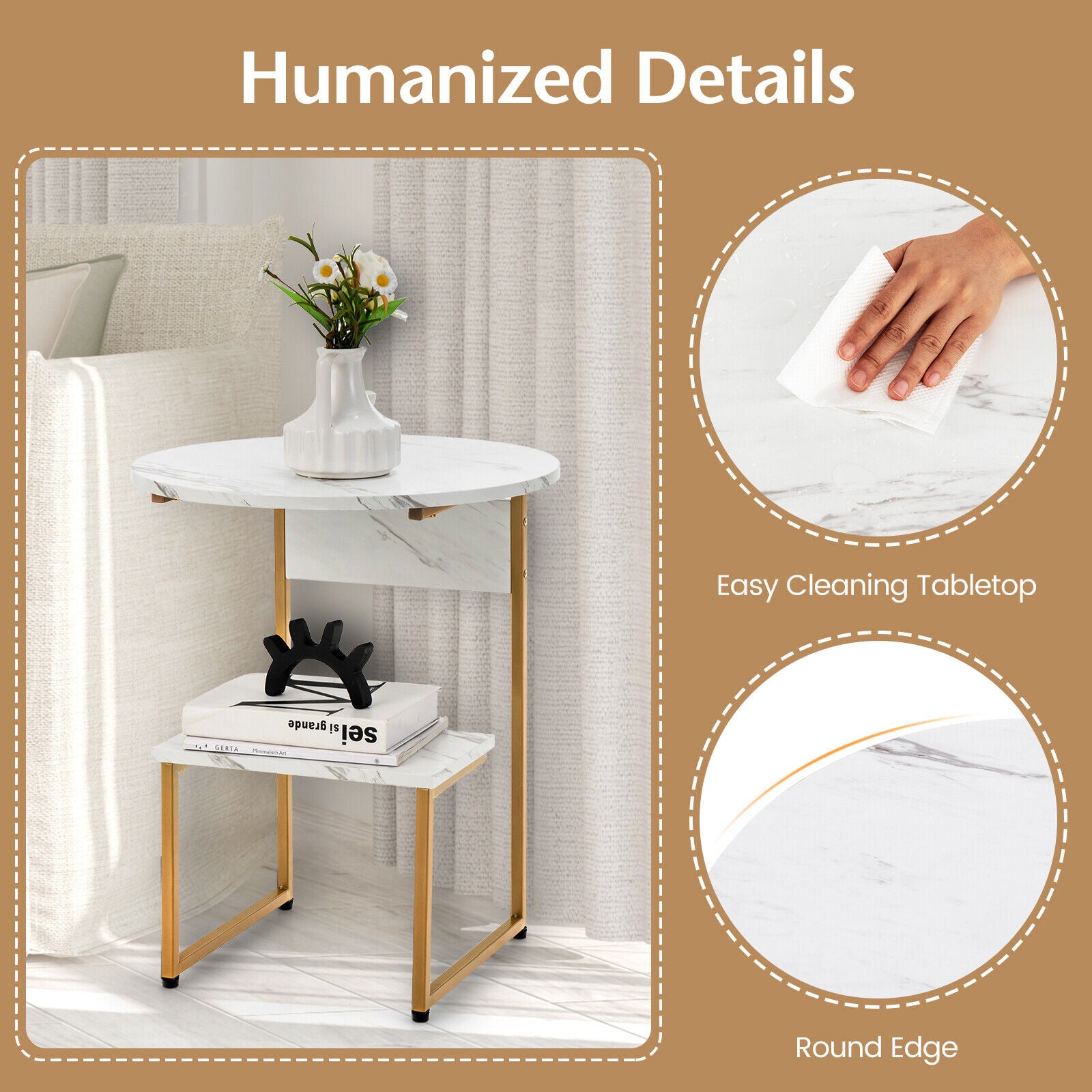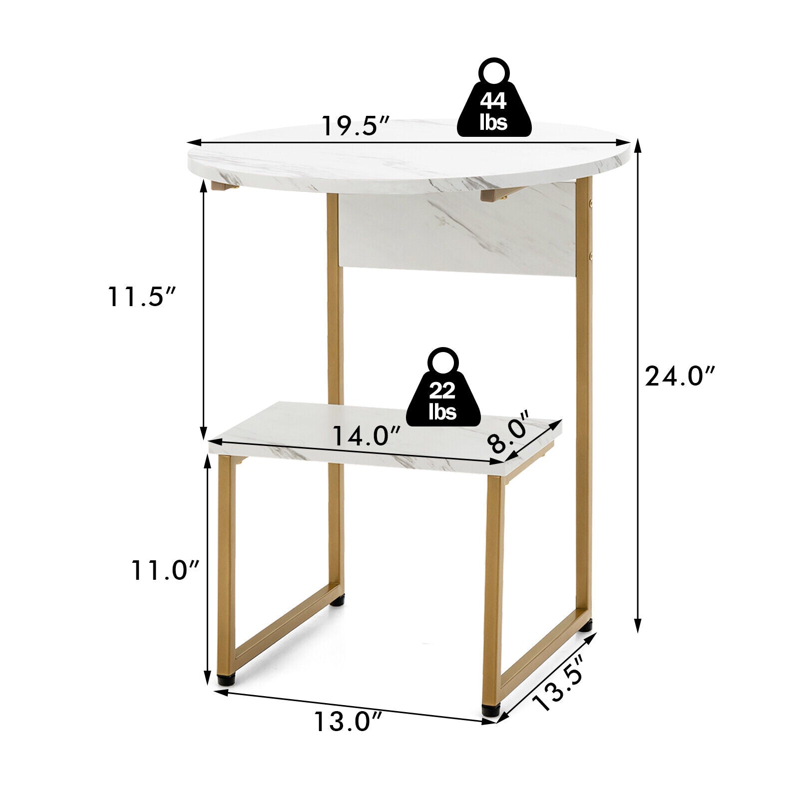 ● Classic Appearance for Decoration: The side table is mainly designed with two panels a rounded and a square which are covered with irregular faux marble textures to show an elegant vibe. Plus the steel frame becomes more pronounced under the white background making itself a more charming decoration.