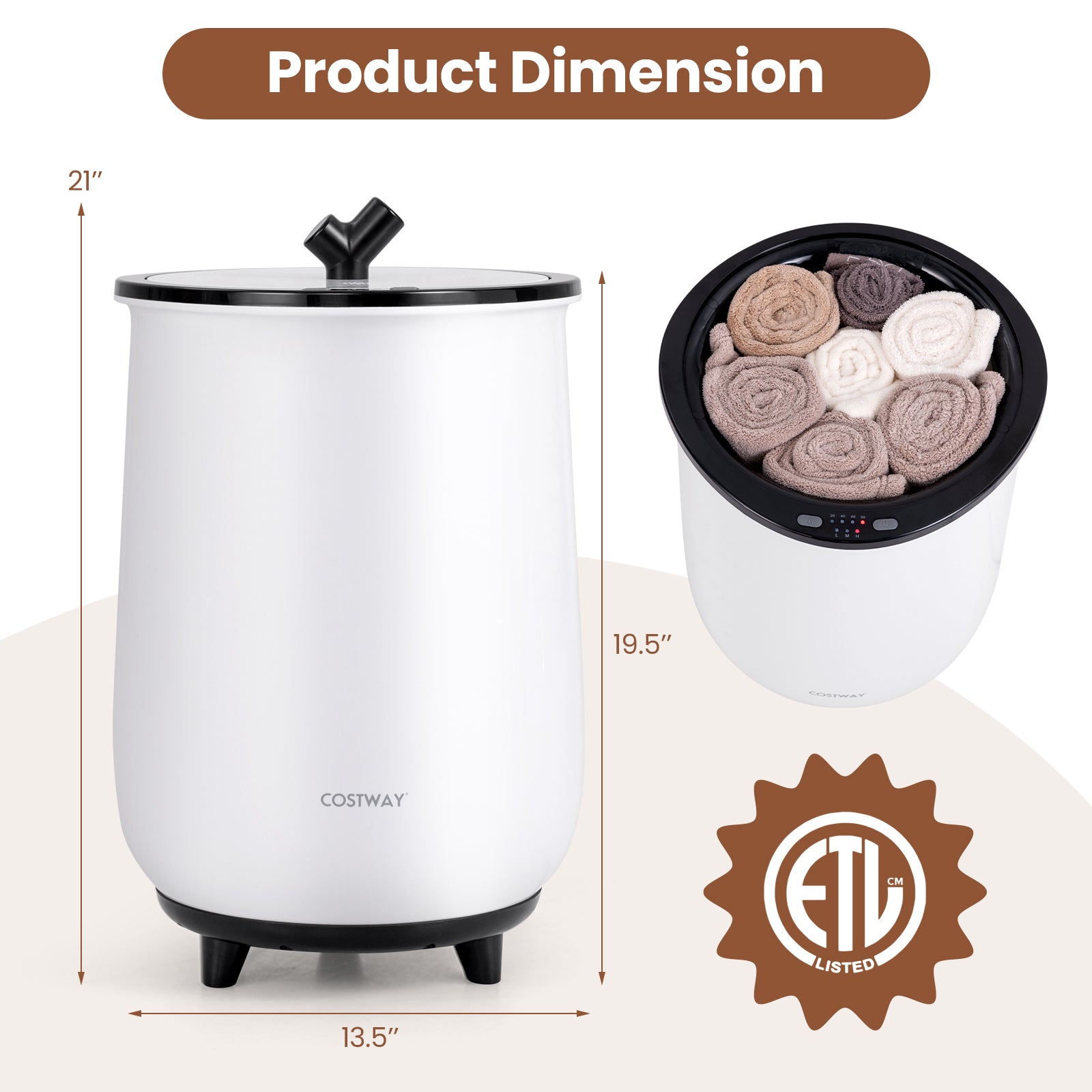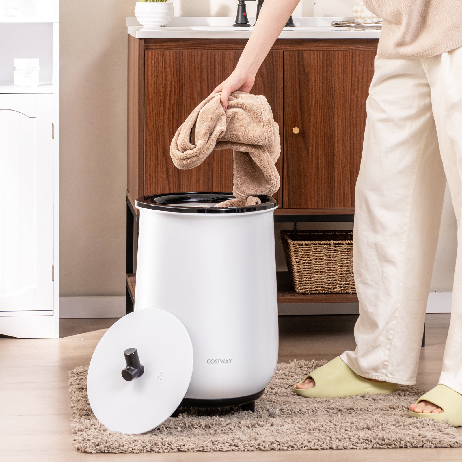● Compact Design and Stable Base: This compact portable and lightweight towel warmer bucket can fit any small space and is easy to move and carry. What's more 3 supporting legs with anti-slip foot pads can keep the towel warmer and stable anytime and anywhere.