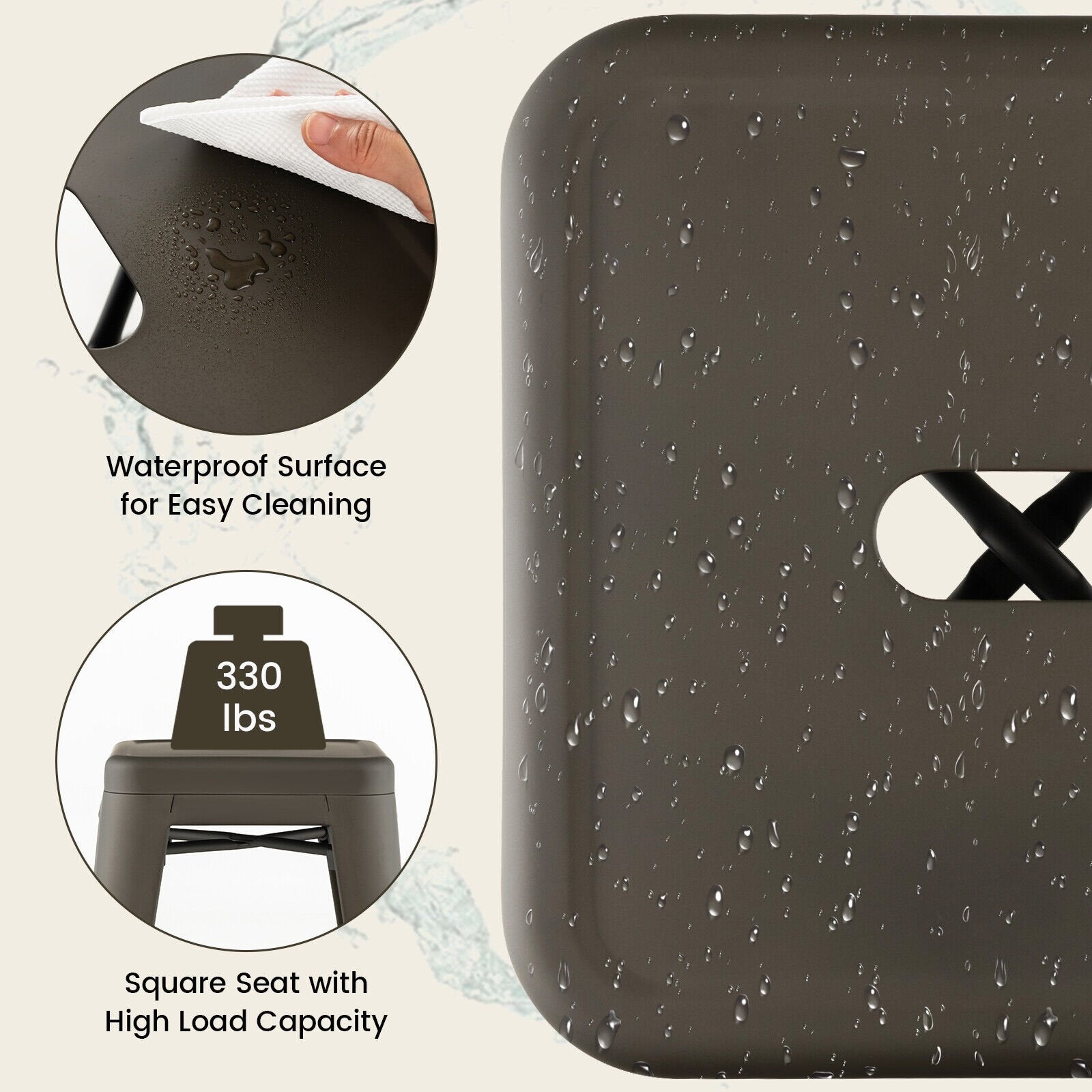 ● Rustproof and Waterproof Barstools: Our metal bar stools with plastic sprayed surface ensure excellent water resistance rust resistance and wear reistance. Meanwhile the plastic sprayed surface is smooth and easy to clean. Besides high-quality metal material also allows for outstanding durability.
