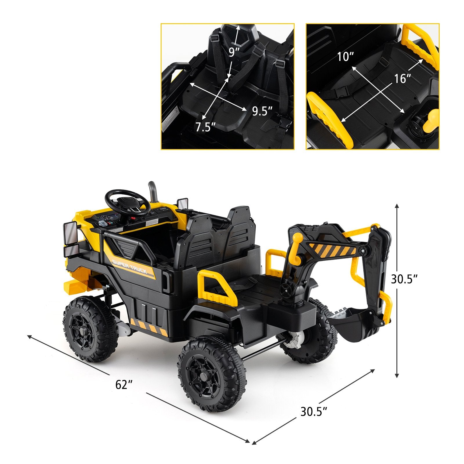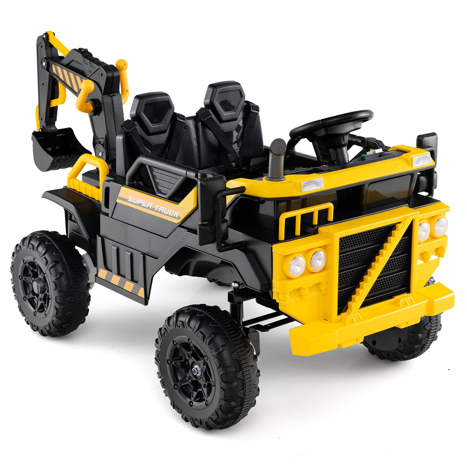 ● Safety First: ASTM- and CPSIA-compliant ride-on construction vehicle for kids with seat belts lockable doors and sturdy handrails is a secure choice for ages 3 years and up. With room for 2 kids totaling 55 lbs parents can relax knowing this ride-on backhoe meets the highest safety standards.