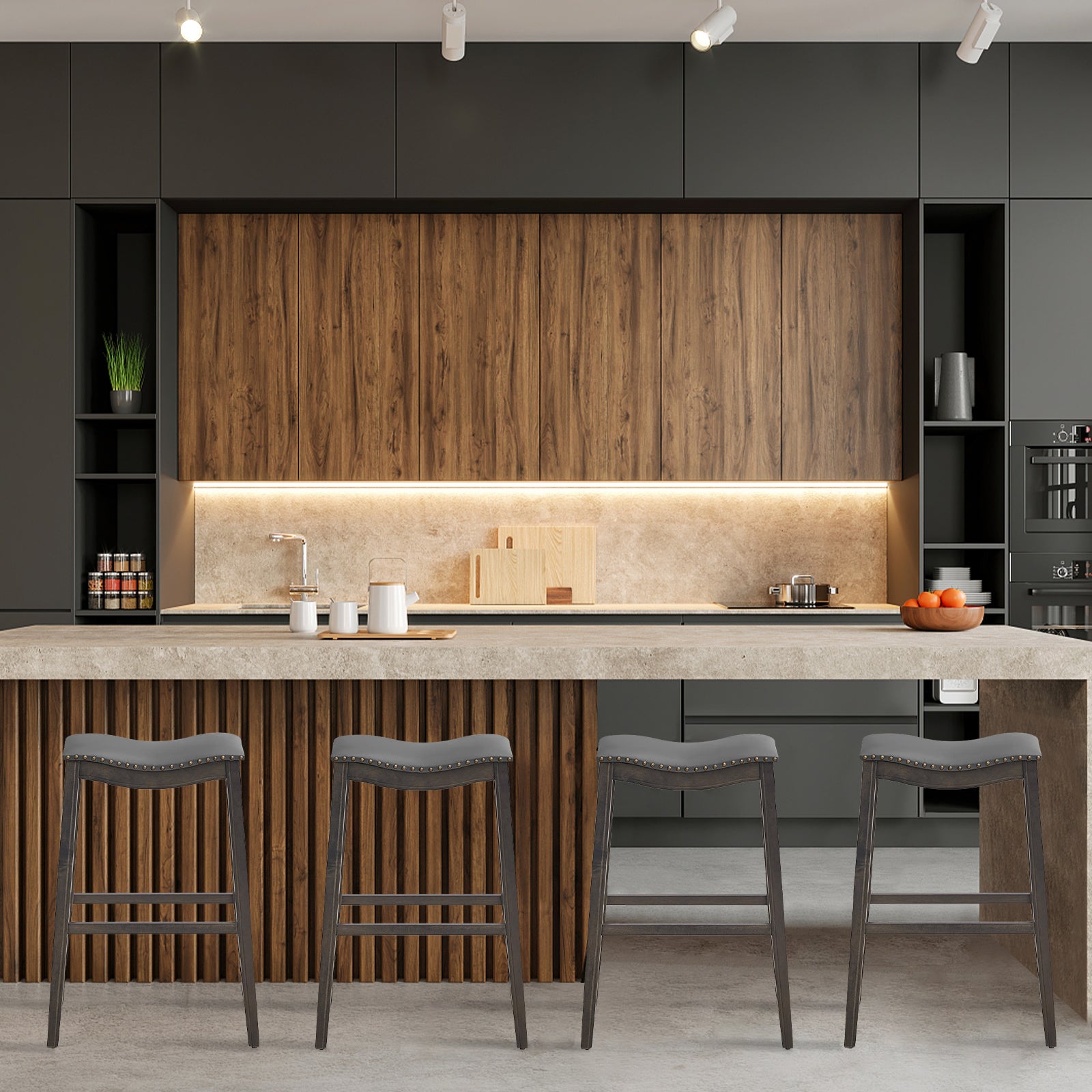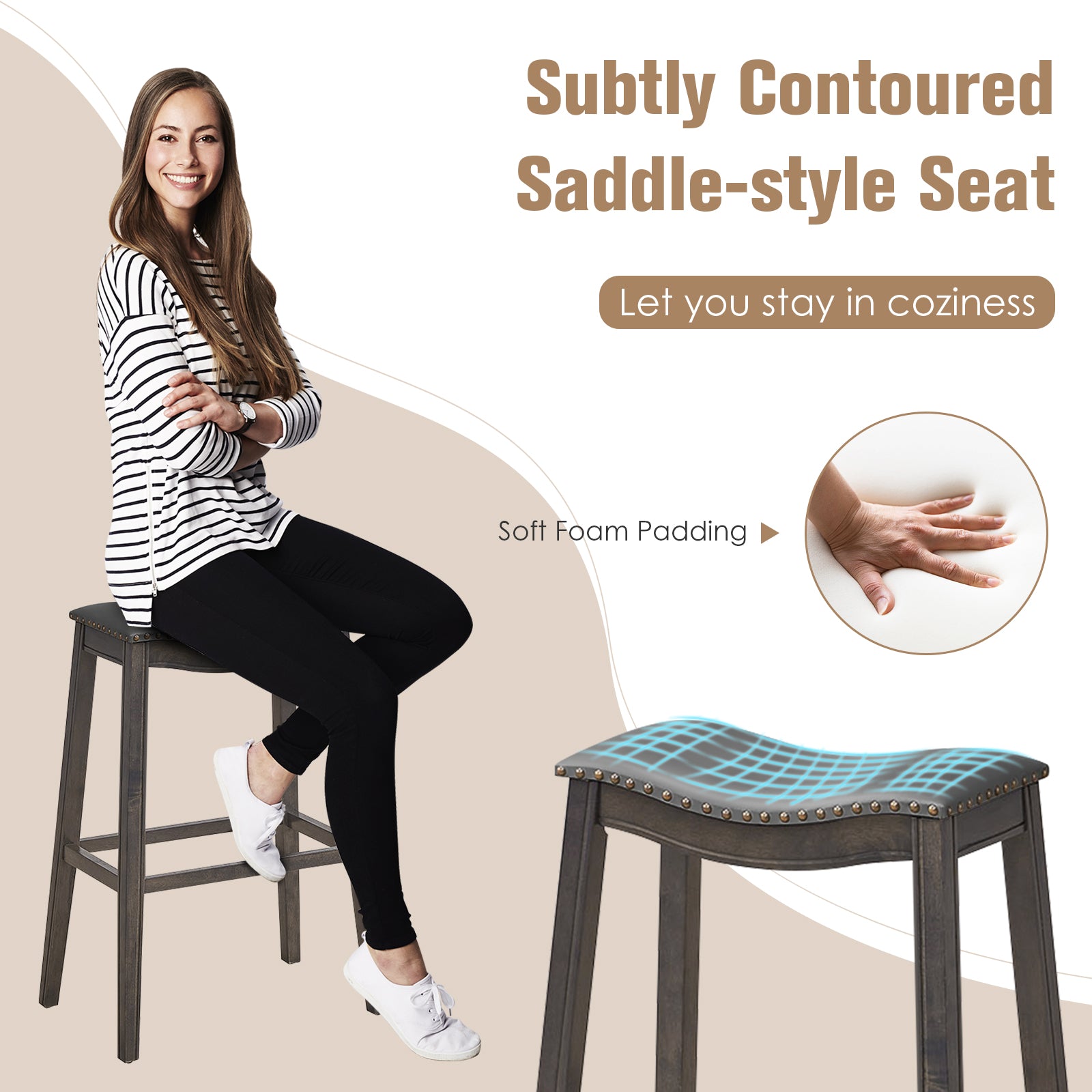 ● Ergonomic Saddle Stools: The backless bar stool features a saddle shape which fits your body's curve well. With an appropriate height of 29" you can comfortably sit beside your kitchen island or bar table and become more relaxed by placing your feet on the 4 footrests.