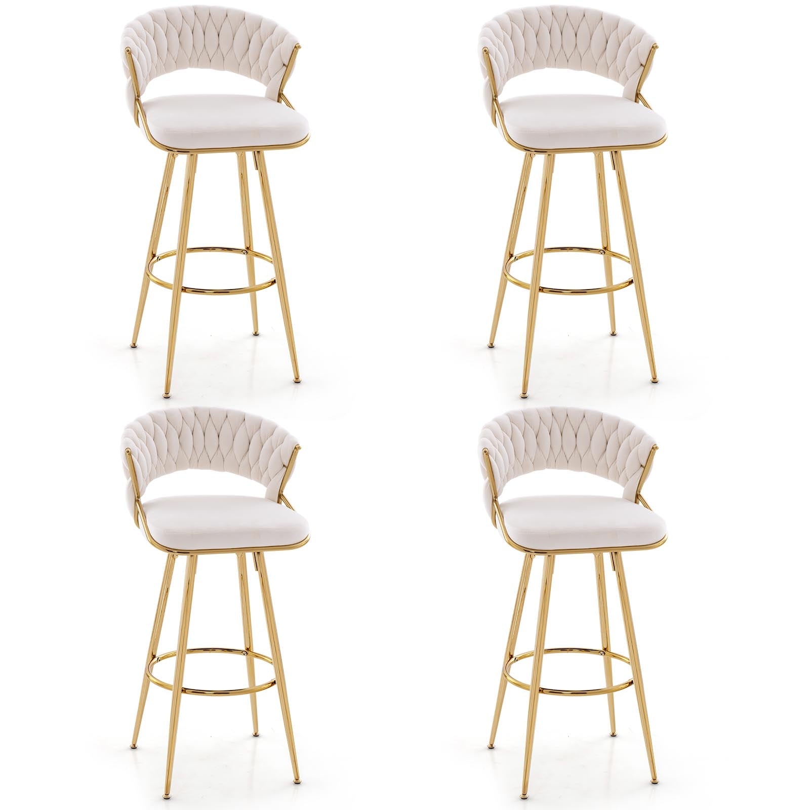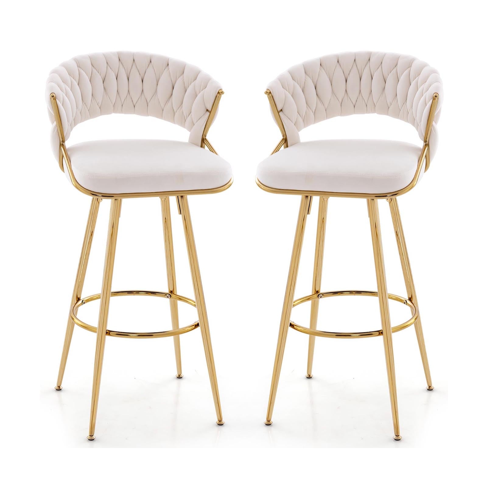 ● Chic Woven Design: Each bar stool is meticulously made with woven backrest adding a touch of elegance and sophistication. The combination of golden finish and woven design creates a stunning visual contrast that effortlessly enhances interior decoration.