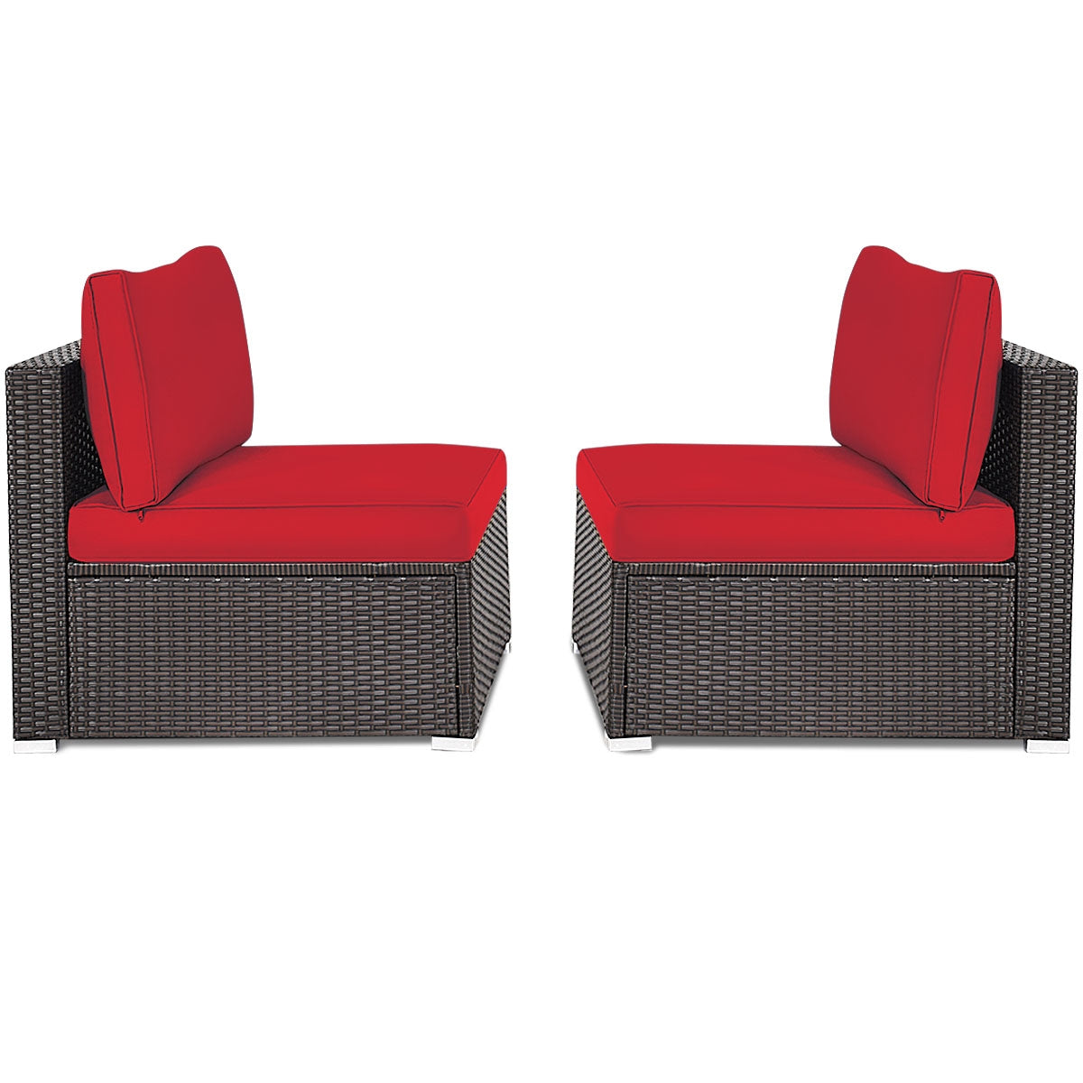 ● Sturdy and Durable Frame: Crafted with weather-resistant PE rattan and powder-coated steel the armless chairs are sturdy to ensure long-term outdoor usage. And the frame of the sofa set is stable and won't deform with a large load capacity.