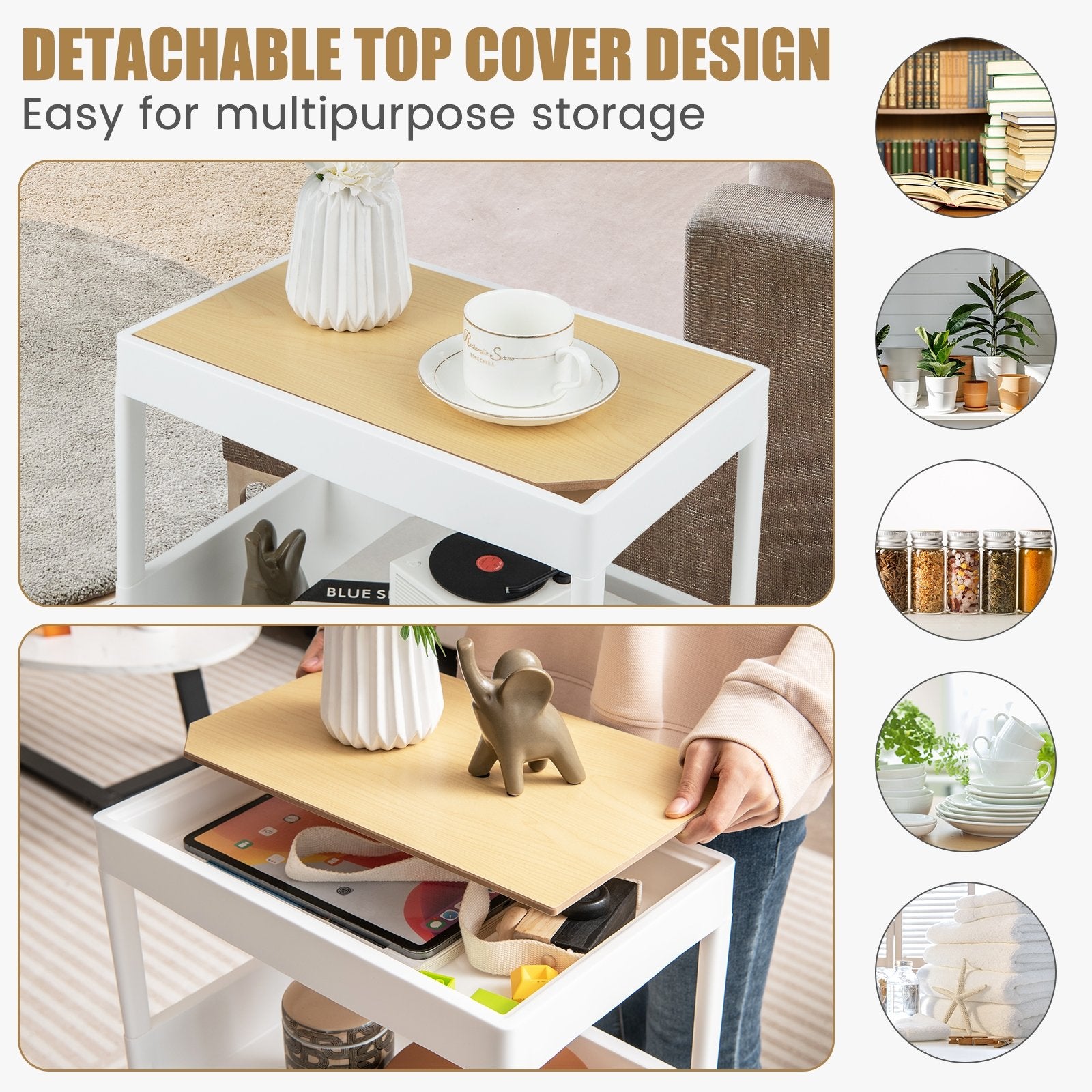 ● Detachable Top Cover Design: Vary from other rolling carts this storage cart comes with a removable top cover allowing you to place a laptop magazines books or cups for extra needs. Besides a hidden space under the top cover keeps your items away from dust.