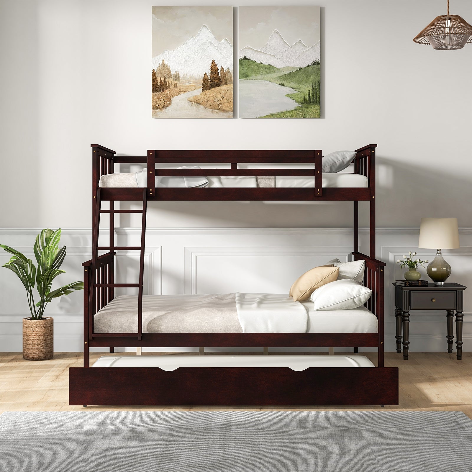 3-in-1 Twin Over Full Bunk Bed with Trundle and Ladder-Espresso