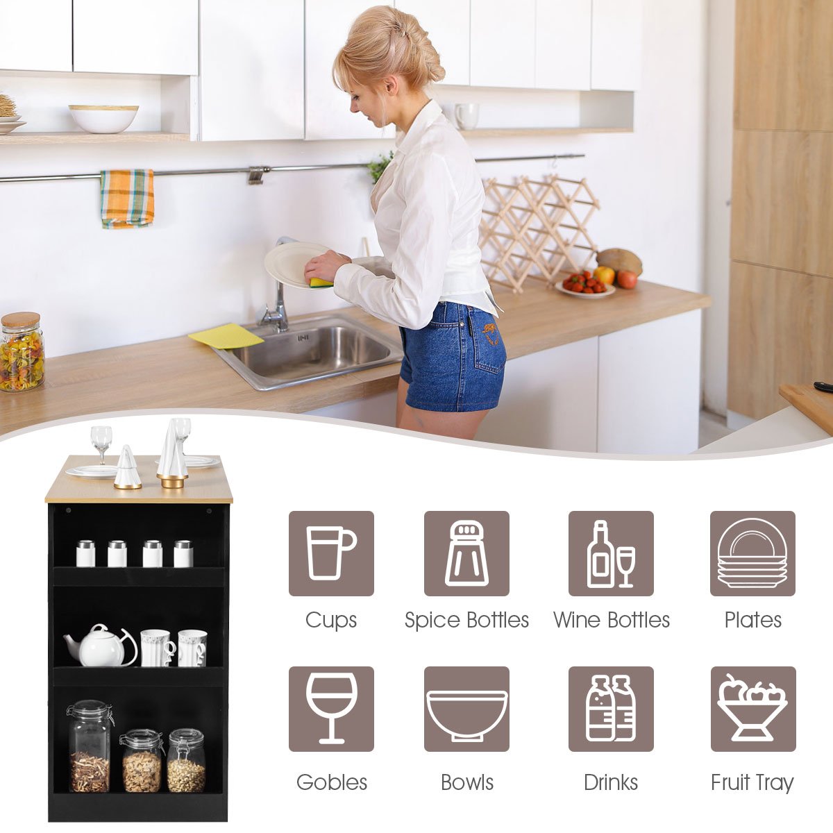 ● Wide Table Top and Deep Storage Shelves: The tabletop is wide enough to cater to 2 people dining at the same time without any narrowness. Meanwhile there are 3 deep storage shelves at the side which not only extremely expands your storage space for dishes cups and other kitchen essentials but also make them easily accessible during meal time.