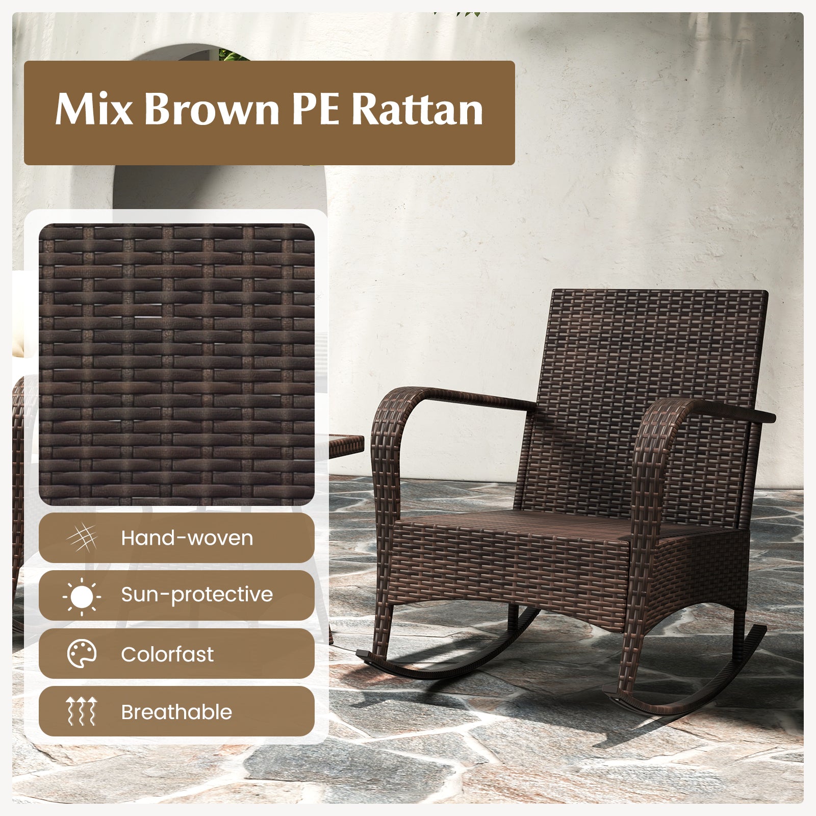 ● Premium Rattan Design: Crafted with high-quality mix brown PE rattan this rocking set boasts durability and style. The unique weaving matches any outdoor decor ensuring a sleek addition to outdoor places that lasts year after year.