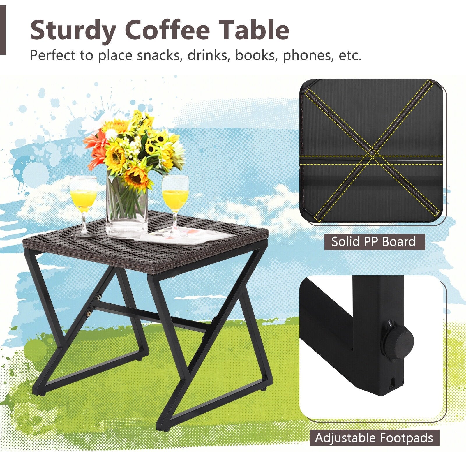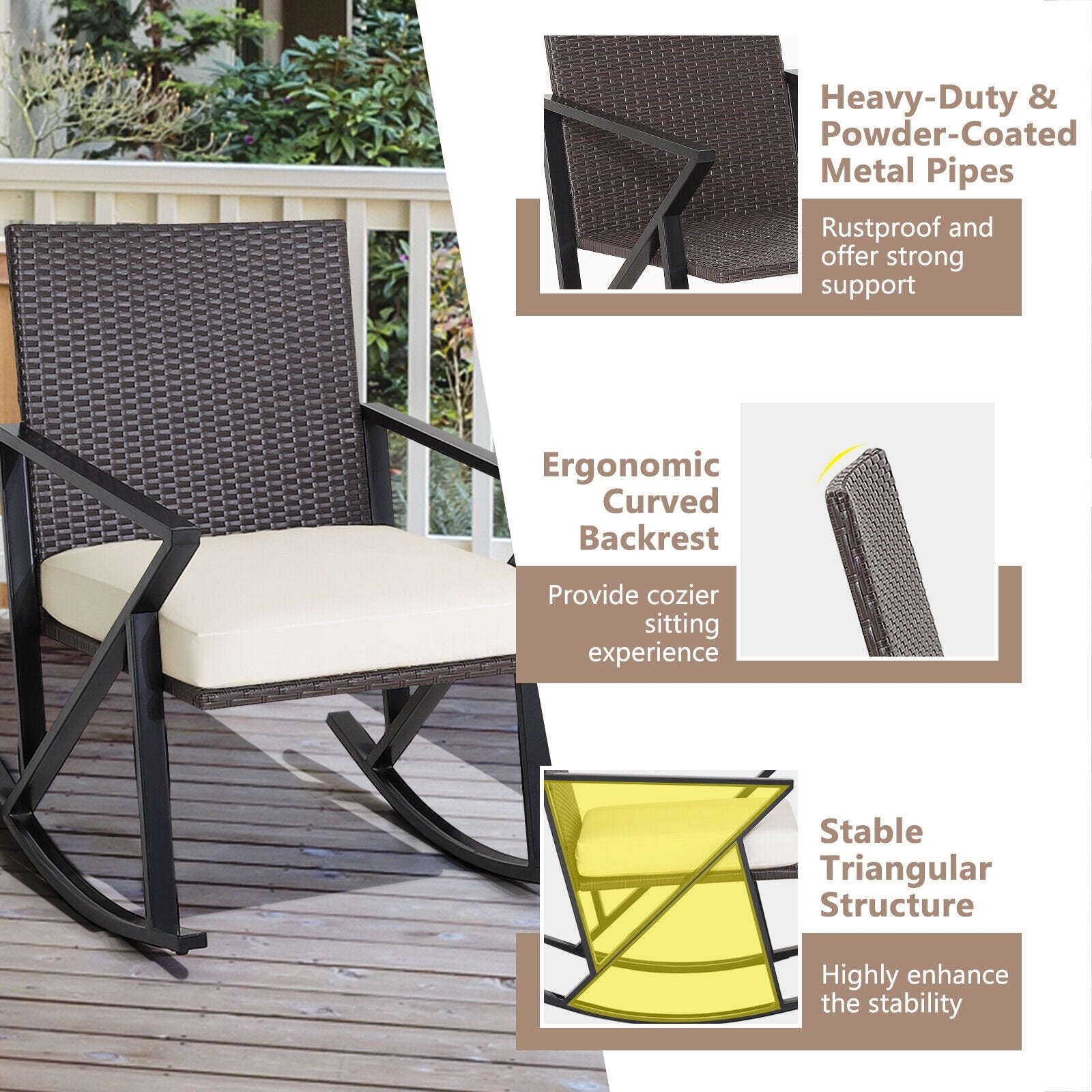 ● Convenient Side Table: This 3-piece rocking set also comes with a sturdy coffee table which is perfect to place snacks drinks books phones and so on for easy reach. Featuring a solid PP board under the tabletop the table is of higher stability. And the adjustable footpads keep it more stable on the uneven ground.