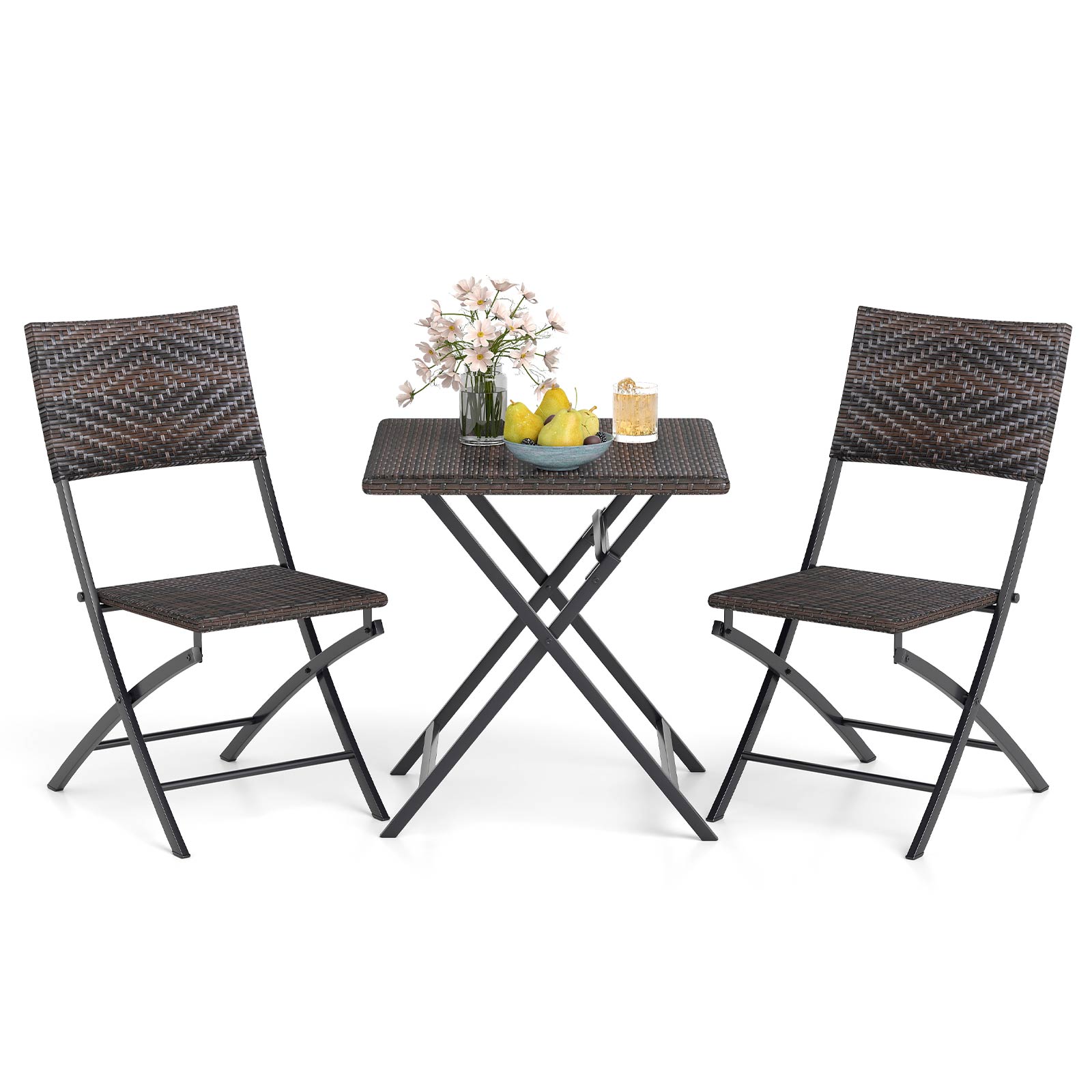 ● Comfy Sitting Experience: Featuring ergonomic backrest the 2 folding chairs of this outdoor furniture set bring you coziness and make you more relaxed. Also the rattan seat is breathable for you to sit.