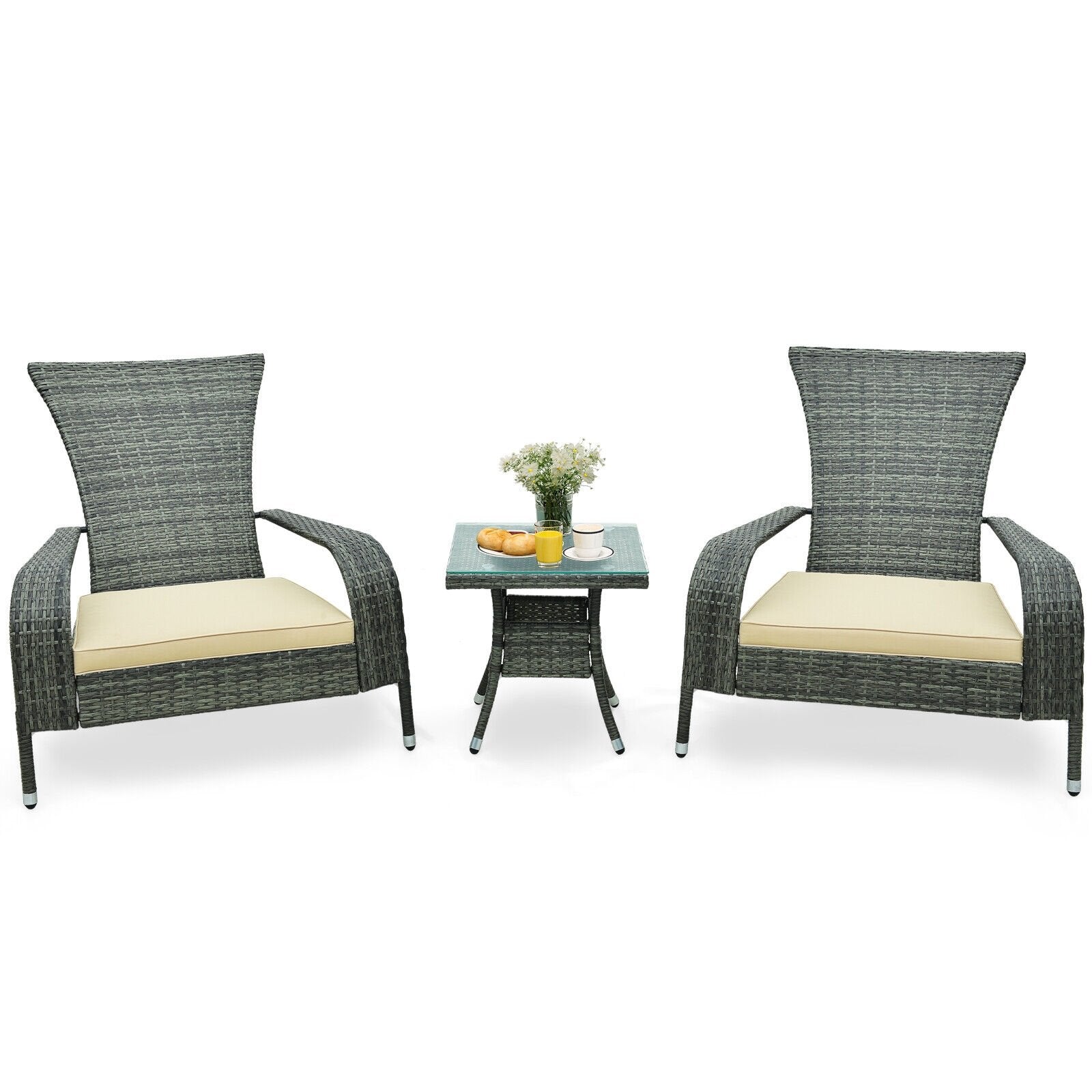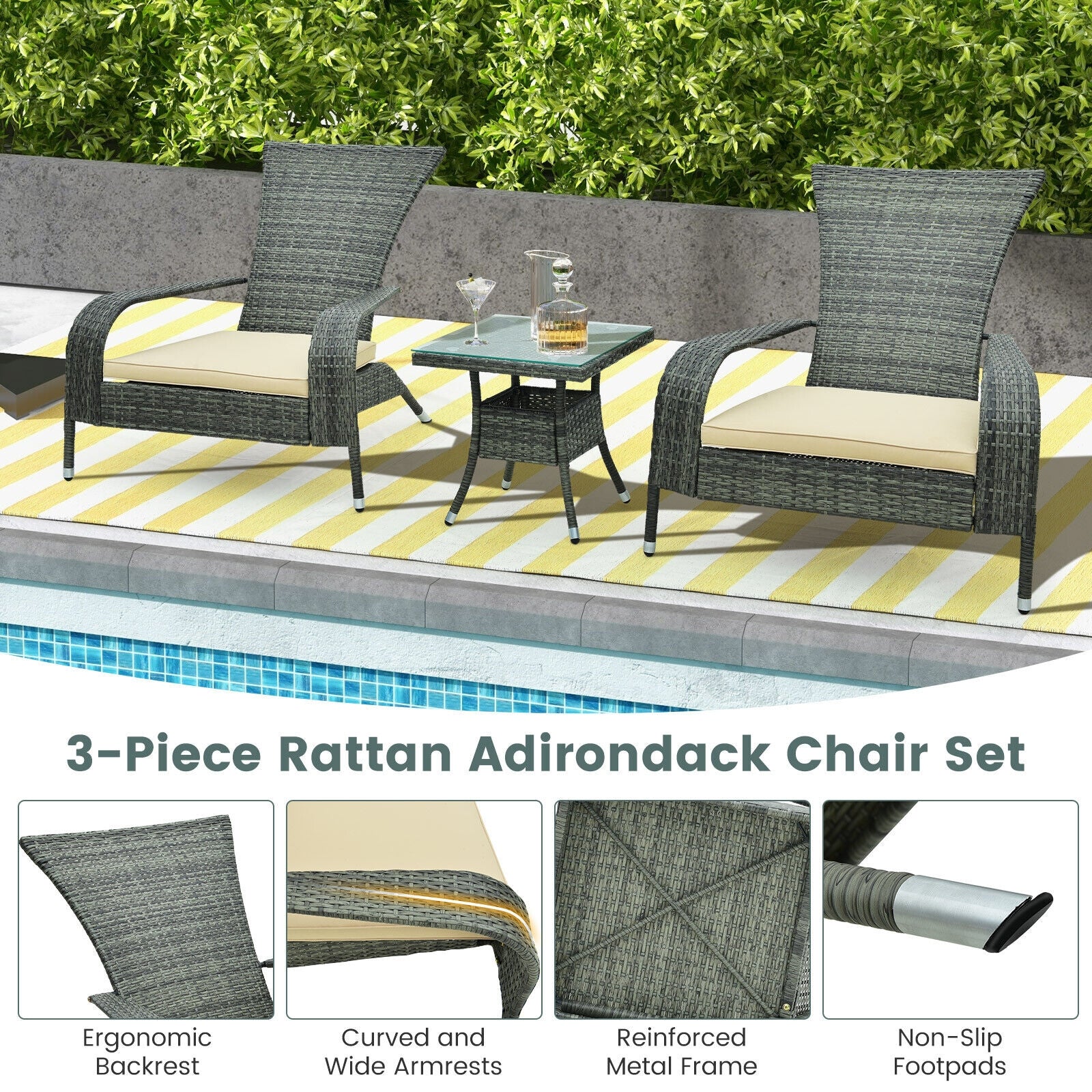 ● Awesome Patio Addition: This 3-piece Adirondack set with an elegant look and high functionality is a nice choice for you to relax outdoors. Enjoy leisure time with this patio set in backyard poolside and any place you want. Dimension of chair: 38.5" x 34" x 33" (L x W x H). Dimension of coffee table: 17.5" x 17.5" x 18" (L x W x H).