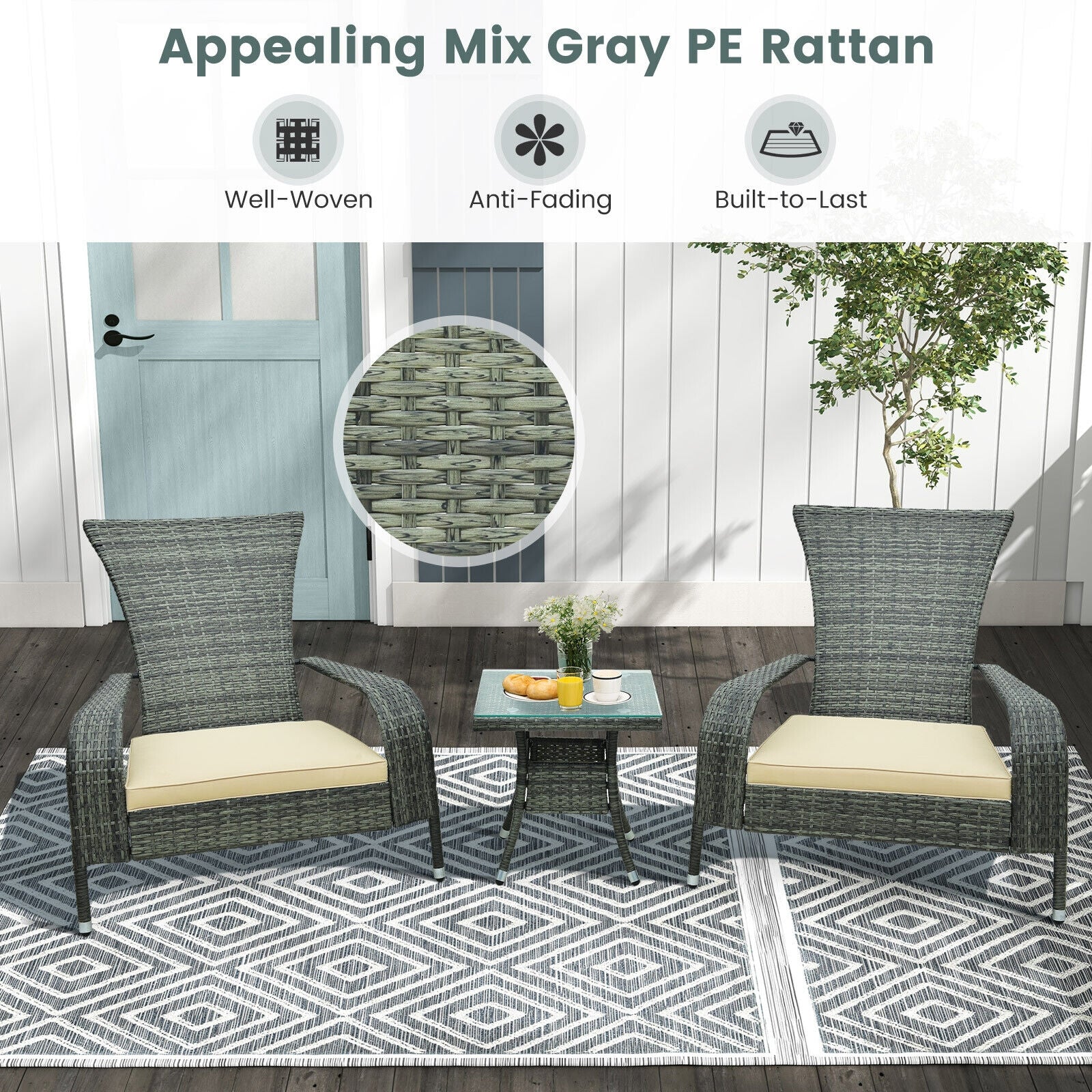 ● Appealing Rattan Surface: Both the table and chairs boast top-grade mix gray PE rattan which is appealing anti-fading and built-to-last. Thus the patio set can withstand long-time outdoor use.
