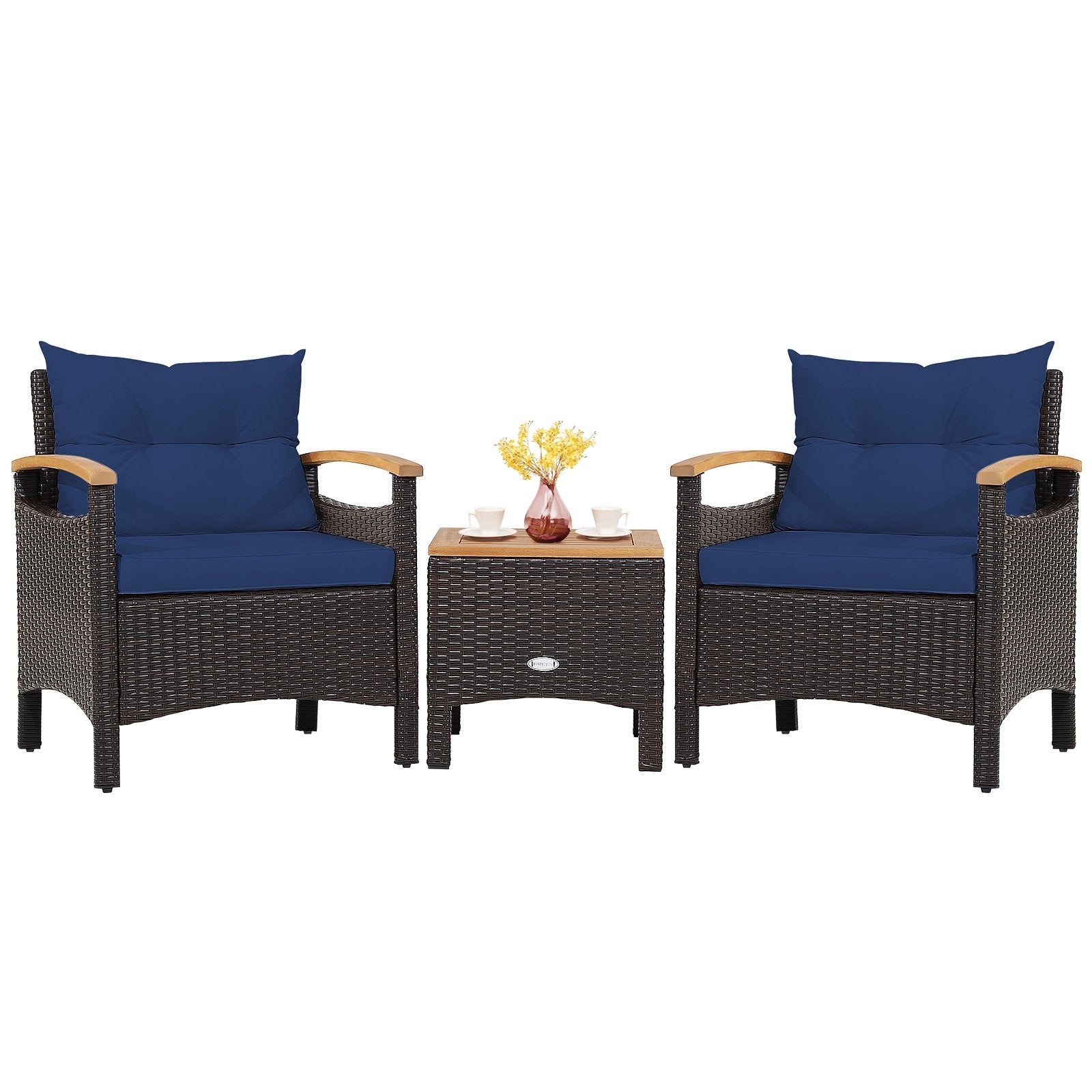 3 Pieces Patio Rattan Furniture Set with Removable Cushion-Navy