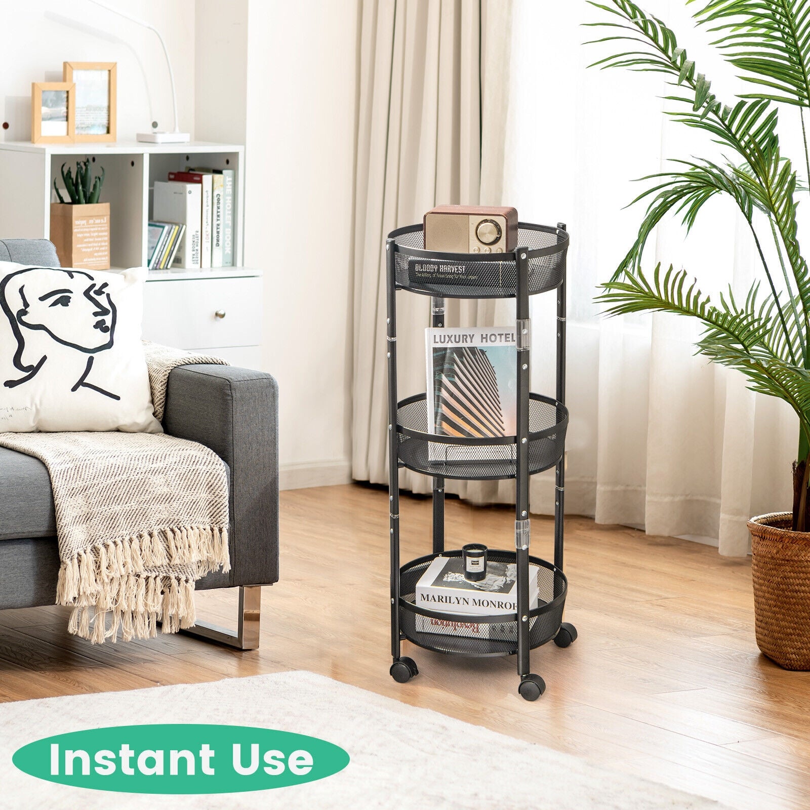 ● Large Storage Capacity: This 3-tier fruit basket stand on wheels provides sufficient storage space for a variety of items such as fruit vegetables spice jars cups drinks and snacks which is a wise storage solution to keep your kitchen clean and tidy. Meanwhile the mesh baskets promote good air flow.