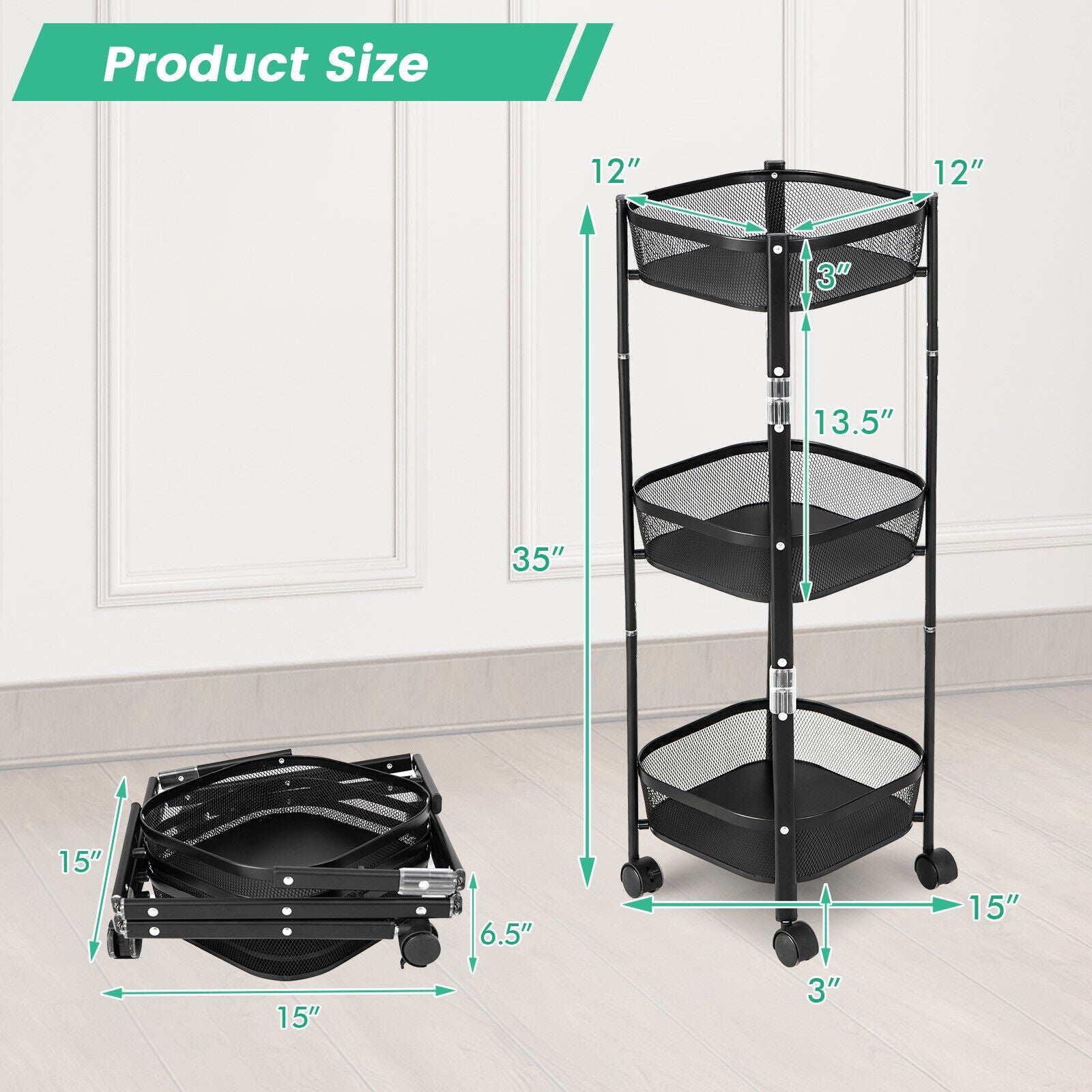 3-Tier Rotating 1-Second folding Storage Rack Metal-Square