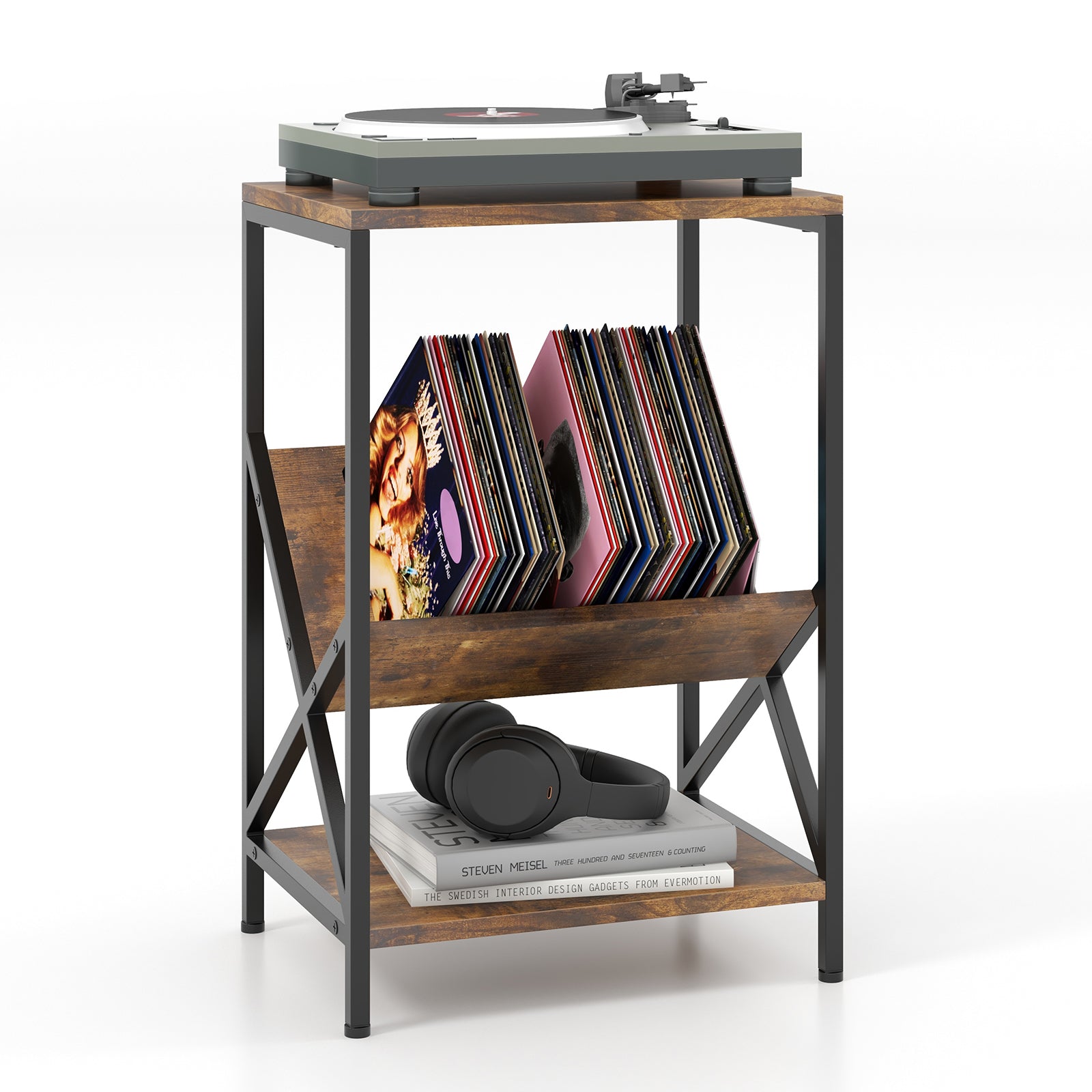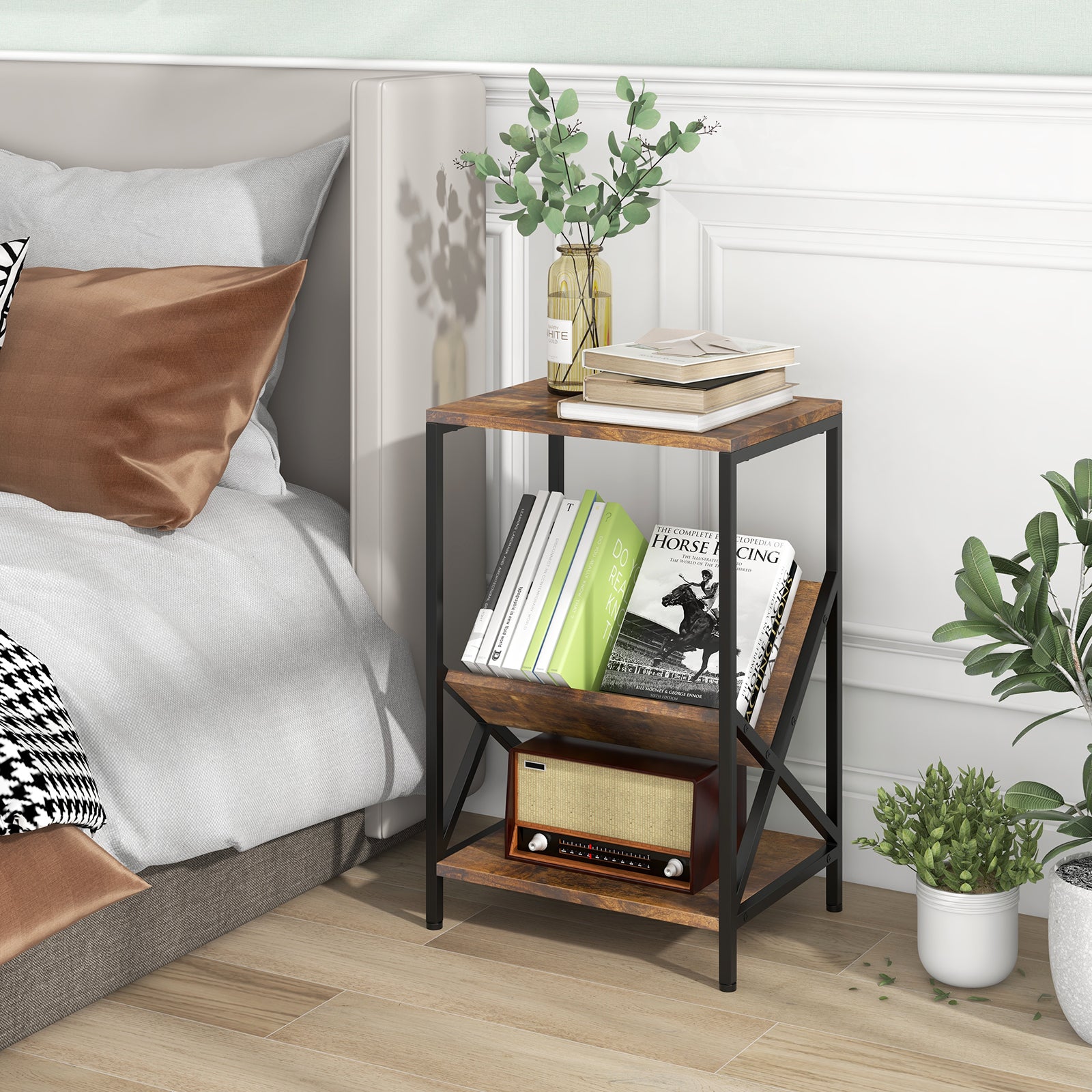 ● Multi-layer Structure for Storage: The multi-purpose side table is designed with a open shelf a V-shaped bookshelf and a bottom shelf offering ample storage for you. The bookshelf is ideal for sorting out your books and magazines. Besides you can also place various sundries on the bottom shelf.