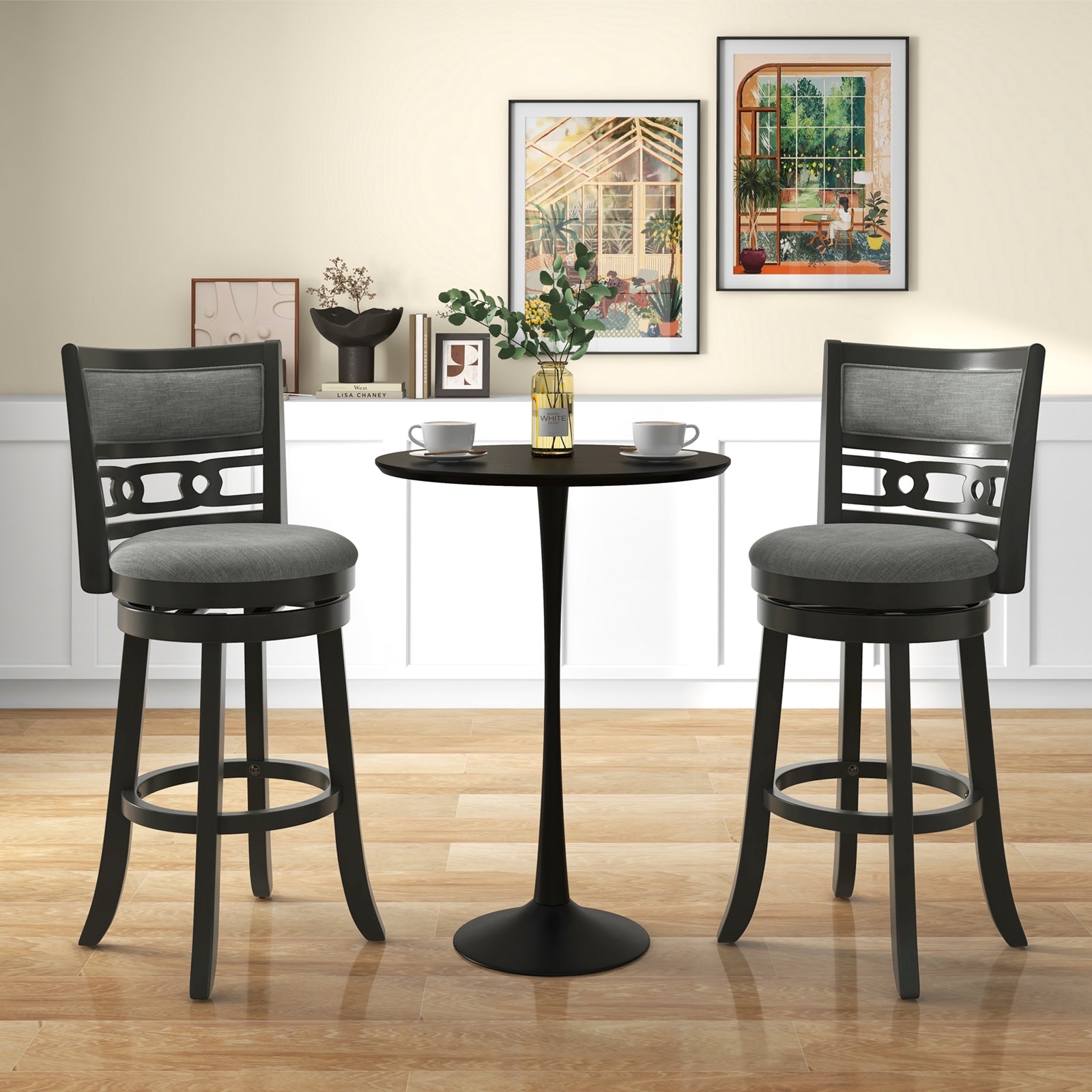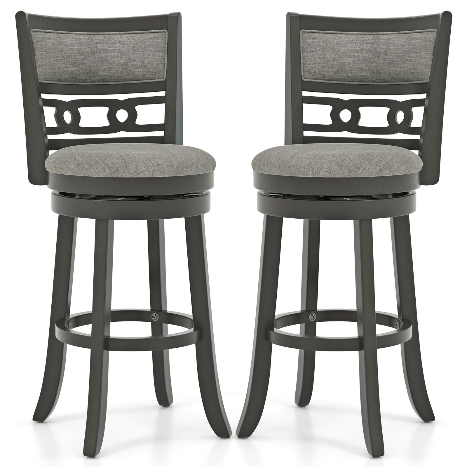 ● Vintage Swivel Design: Indulge in the classic charm and seamless flexibility that each bar chair provides. Expertly designed with a smooth swivel seat it invites convenient conversations and can be the perfect addition to any social setting.