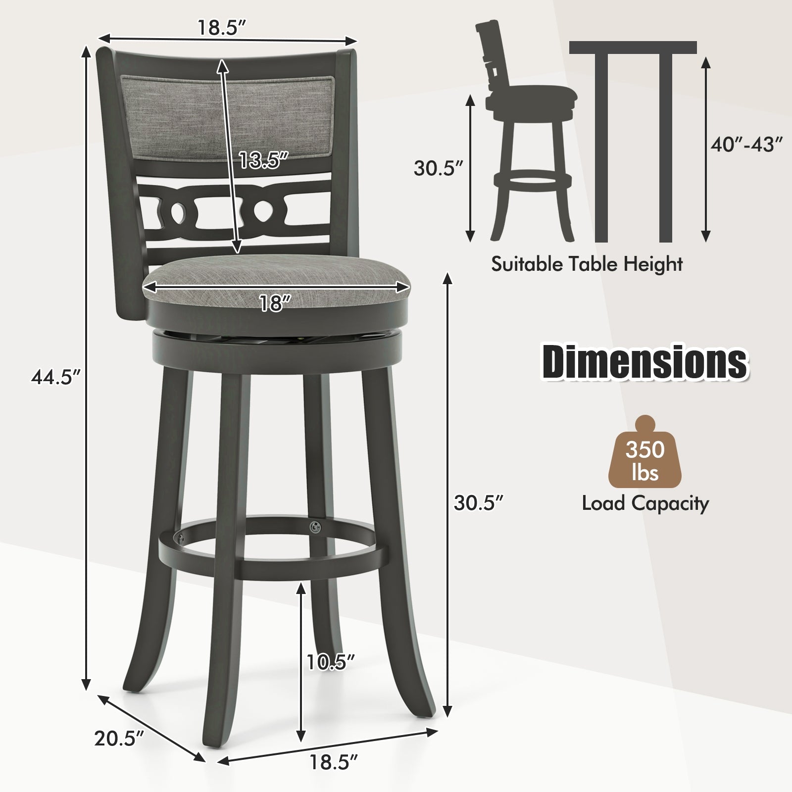 Suitable Table Height | 40"-43" |