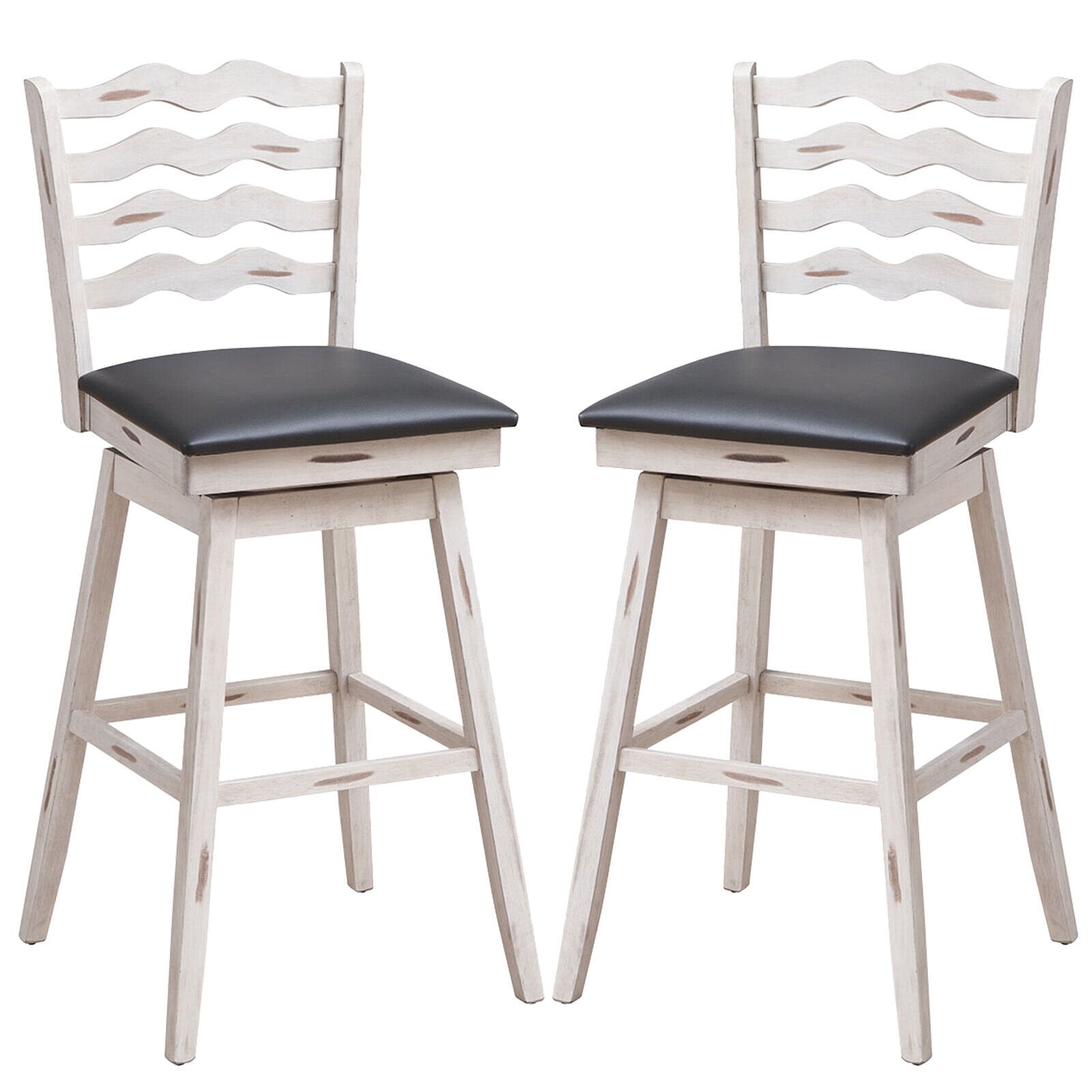 360° Swivel Bar Stools with Rubber Wood Frame and Ergonomic Backrest and Footrest-29 inches